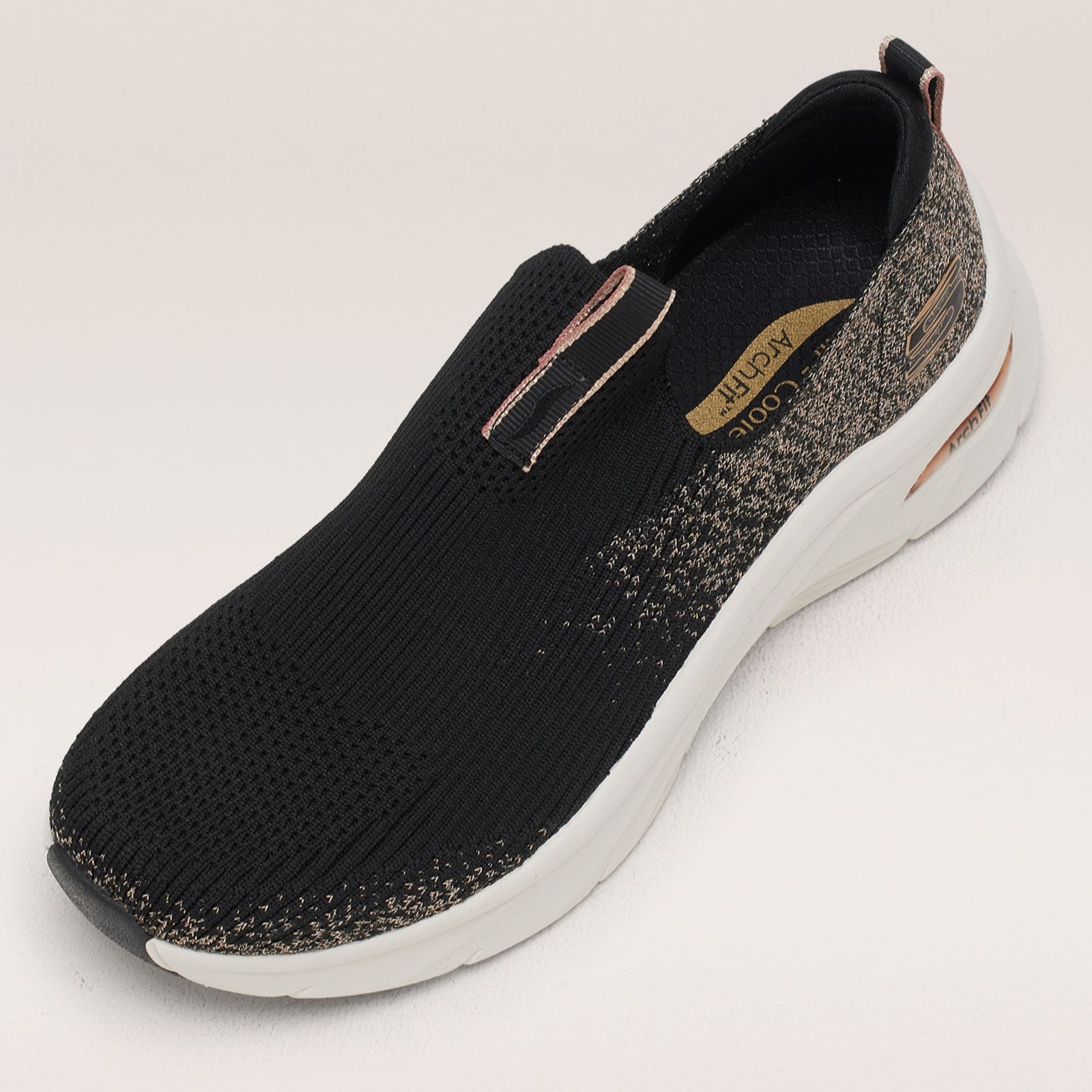 Step into effortless style with the Skechers Arch Fit D'Lux Glimmer Dust slip-on trainers, where comfort meets a touch of sparkle. Designed to support your busy lifestyle, these trainers effortlessly blend fashion and function, making them perfect for everything from casual strolls to active days out. Pair them with your favourite leggings or jeans for a look thats both chic and comfortable, ensuring you look and feel fabulous wherever you go.