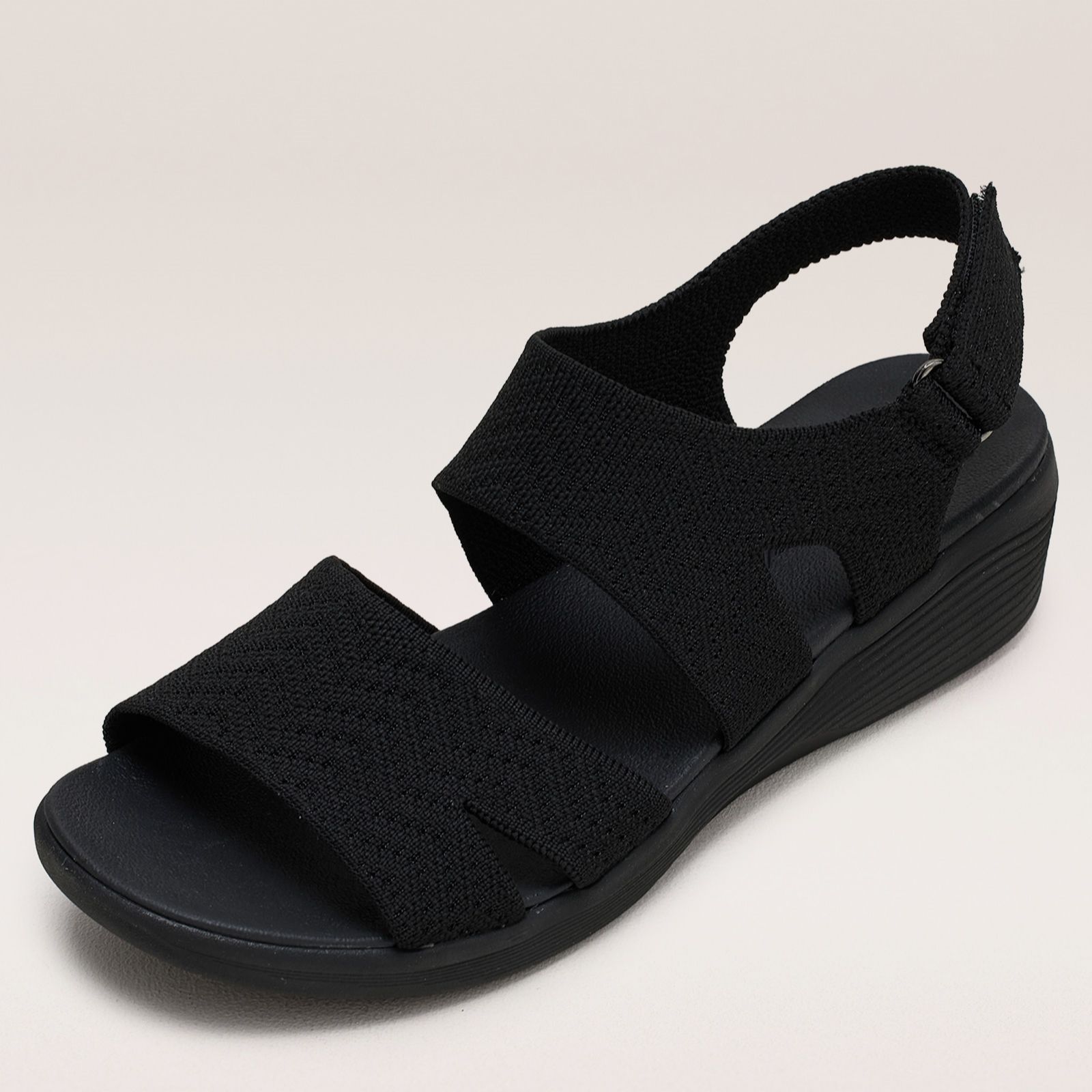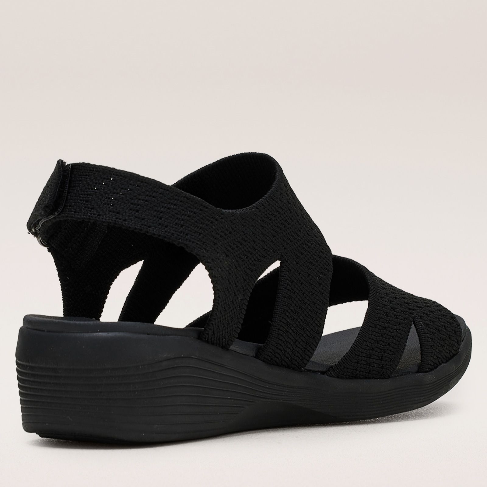 Slip into easy elegance with the Arya Modern Muse sandals from Skechers, crafted in a soft stretch knit with a sling back design for a secure yet flexible fit. Embellished detailing adds a touch of sparkle, while the memory foam cushioning ensures comfort with every step. Perfect for strolls, brunches or evenings out, they pair beautifully with cropped trousers or a flowing summer dress for a relaxed, polished look.