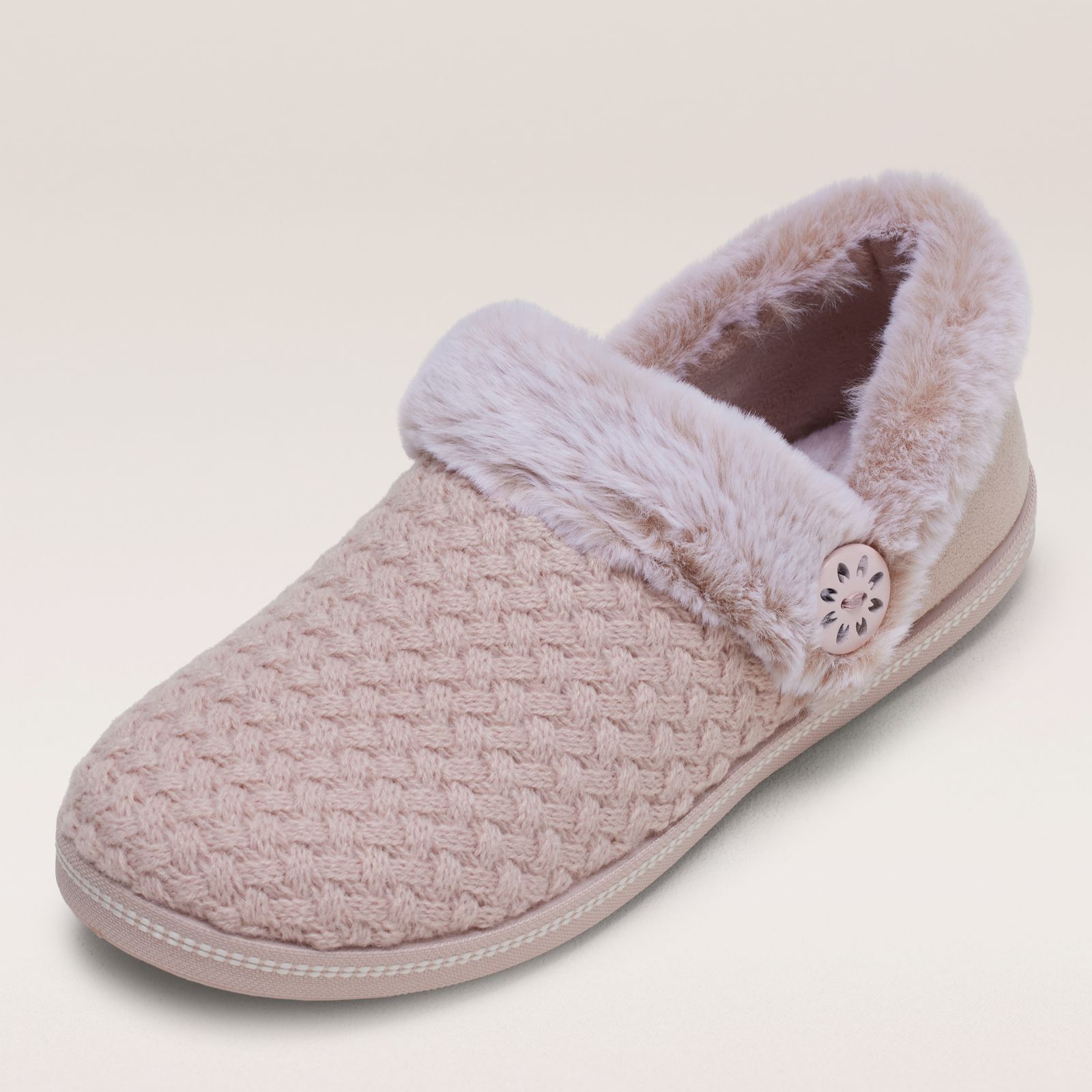 Snuggle into the Skechers cozy campfire slippers, where quilted faux fur and a charming button detail meet plush memory foam comfort. Perfect for lazy mornings, relaxed evenings or cosy weekends at home, these slippers bring warmth and style to your downtime. Pair them with your favourite loungewear or soft leggings for an effortlessly snug look.
