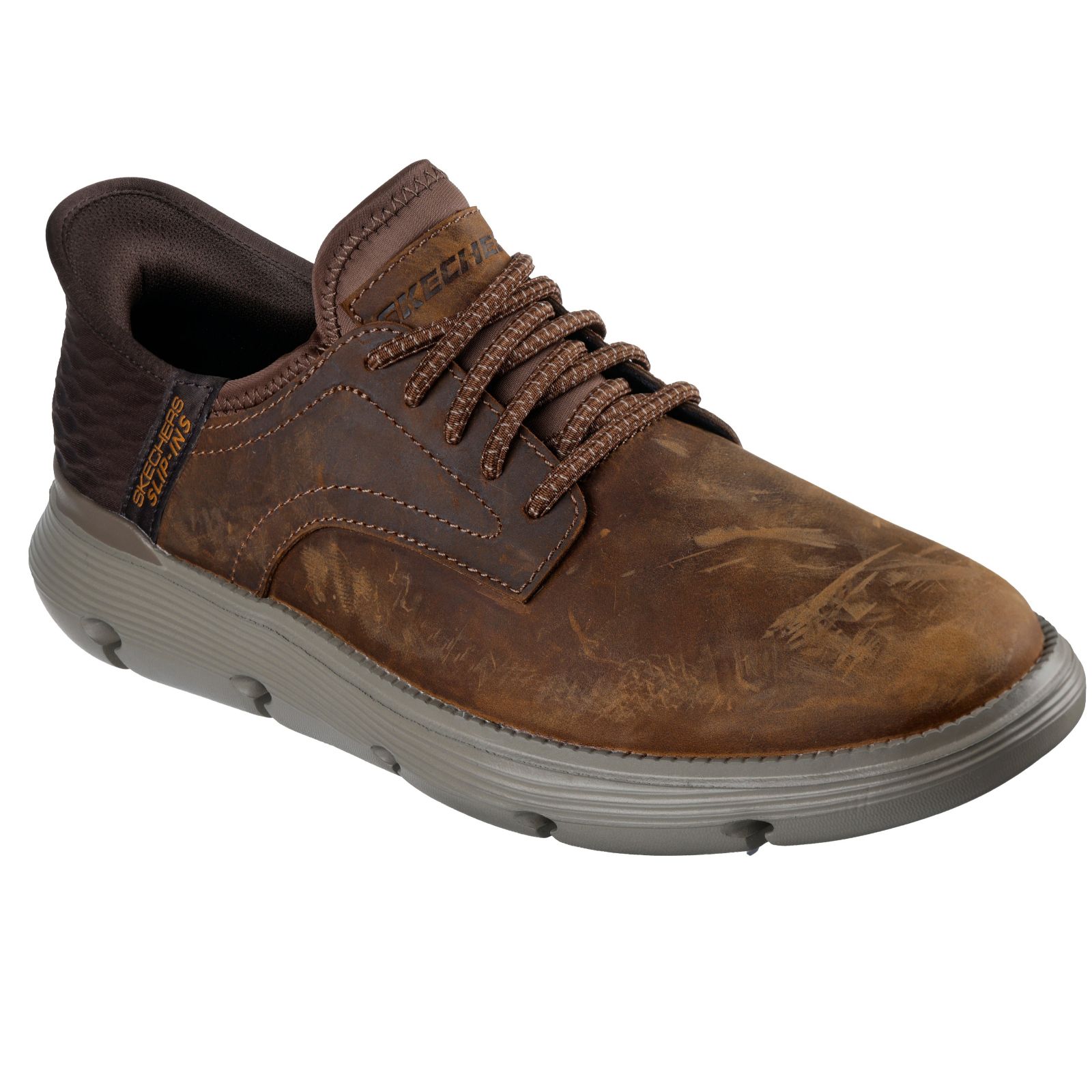 Step into effortless style with the Garza Gervin Slip-Ins Trainers from Skechers. These men's slip-in casual shoes combine the convenience of a slip-on design with the durability of a leather upper and the comfort of a cushioned polyester lining. Perfect for weekend outings or casual Fridays at the office, these trainers are versatile enough for any laid-back occasion. Pair them with jeans and a casual shirt for an easy-going look thats both stylish and comfortable.