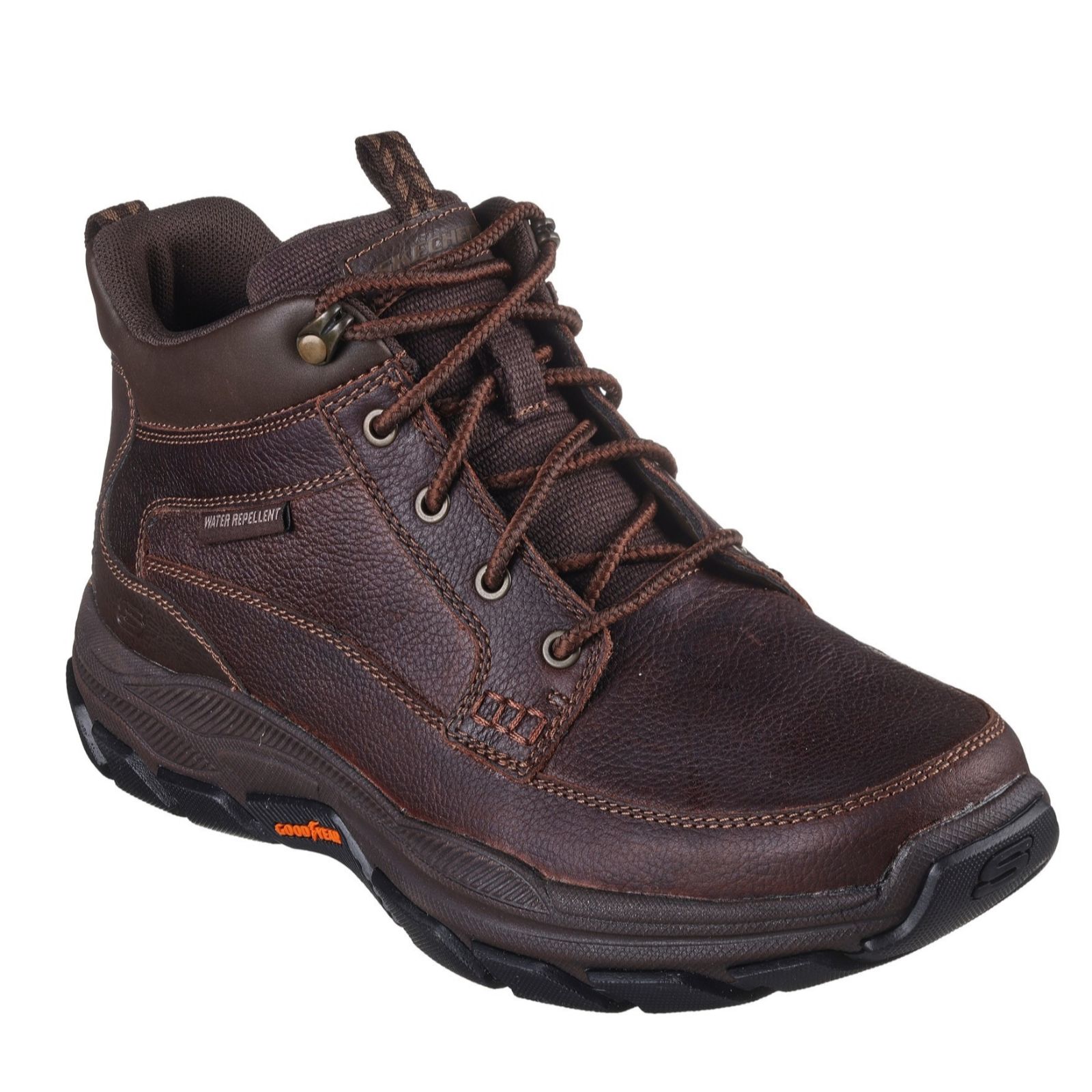 Feel ready for anything in the men's wide fit Respected Boswell boots from Skechers, designed to deliver comfort and support with every step. Featuring a water-repellent upper and Goga Mat Arch cushioning, they're built for stability and durability, making them a reliable choice for weekend adventures or busy days. For a rugged look, team them with cargo trousers and a cosy knit.
