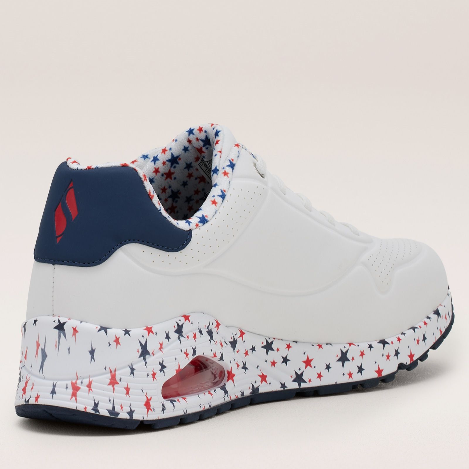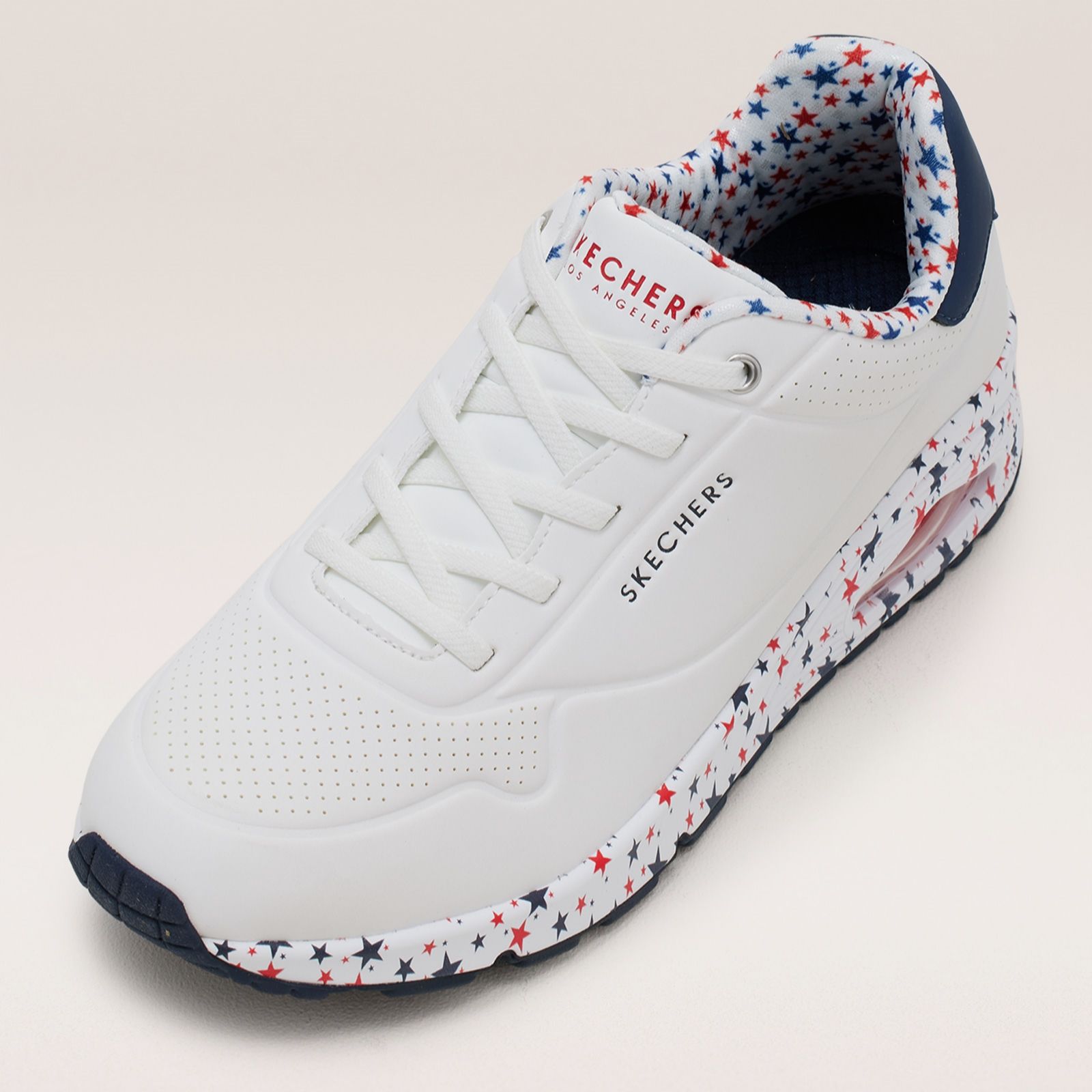 Step up your street style with the Skechers Uno Free Stryde Trainer, where a playful star-printed durabuck upper meets a modern bungee lace design for a fresh, sporty look. Perfect for everything from casual days out to relaxed evenings with friends, these trainers add a fun twist to your everyday wardrobe. Try pairing them with cropped jeans or a midi skirt for an effortless, on-trend finish.