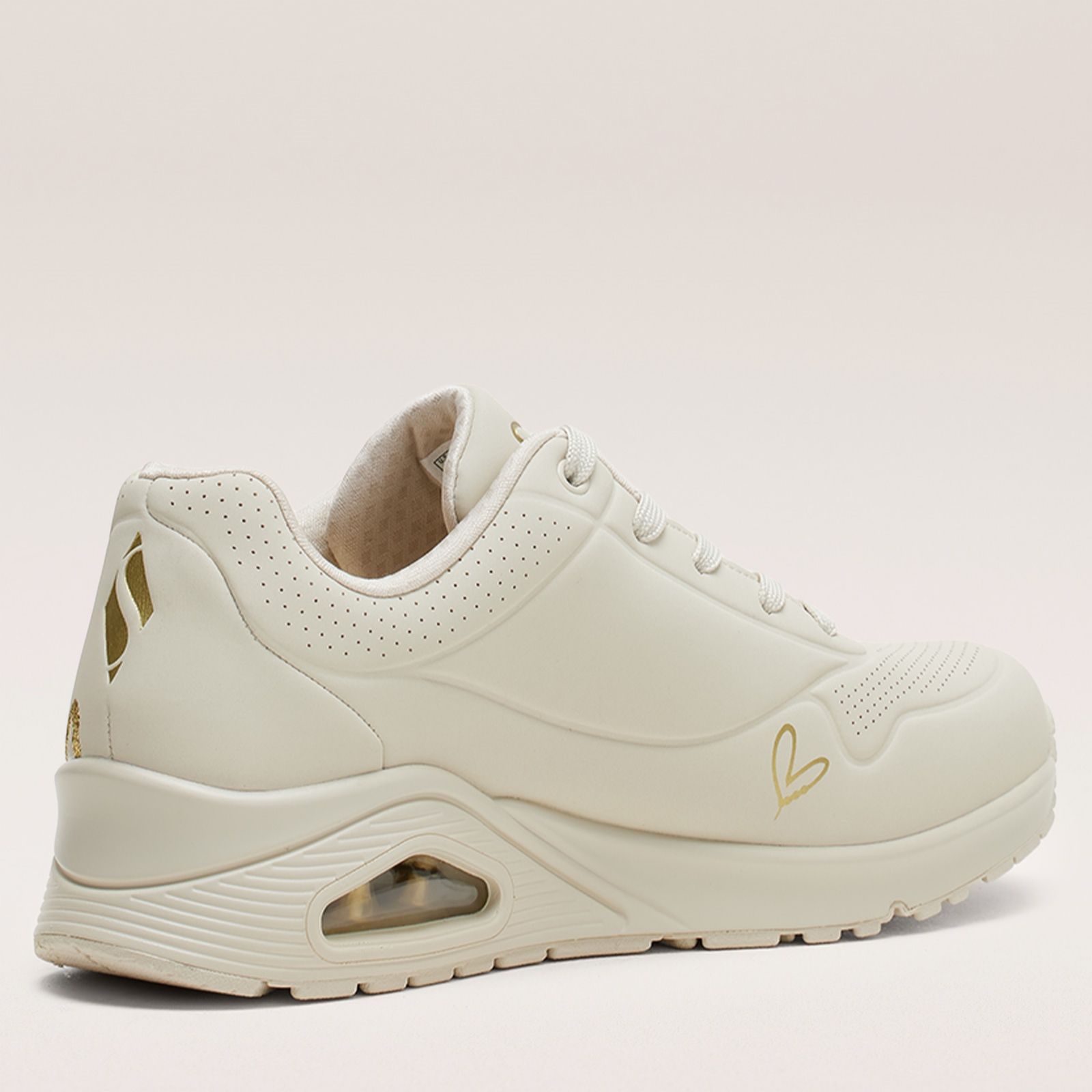Add a touch of charm to your step with the Uno Golden Heart lace-up trainers from Skechers, where playful heart embroidery and a sleek silhouette bring a fresh twist to your everyday style. Whether you're heading to brunch, out shopping or just enjoying a stroll, these trainers blend fun details with all-day comfort. Pair with rolled-up jeans or a casual dress for a look thats effortlessly upbeat.