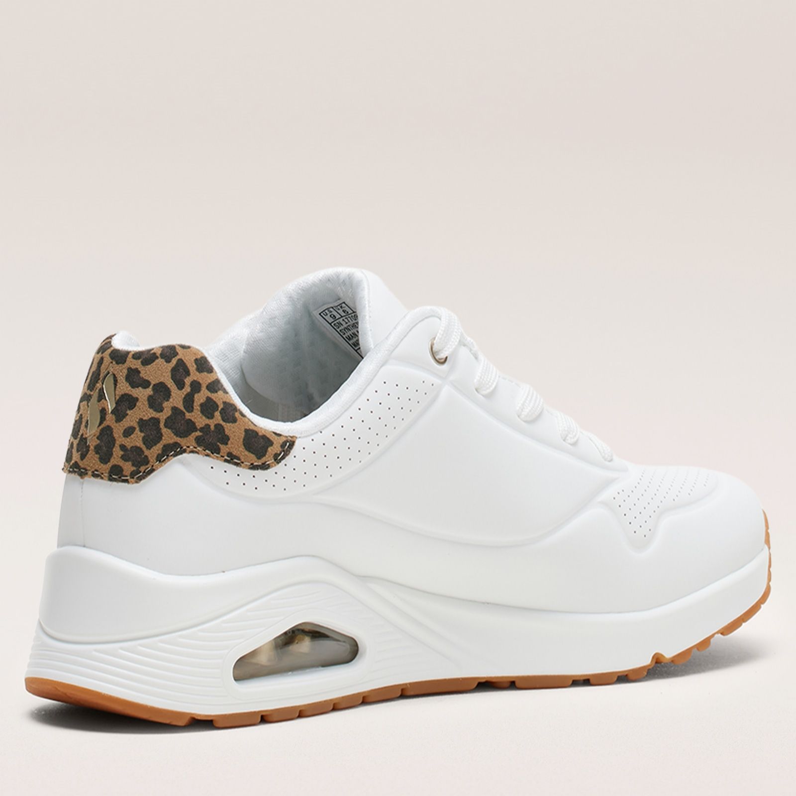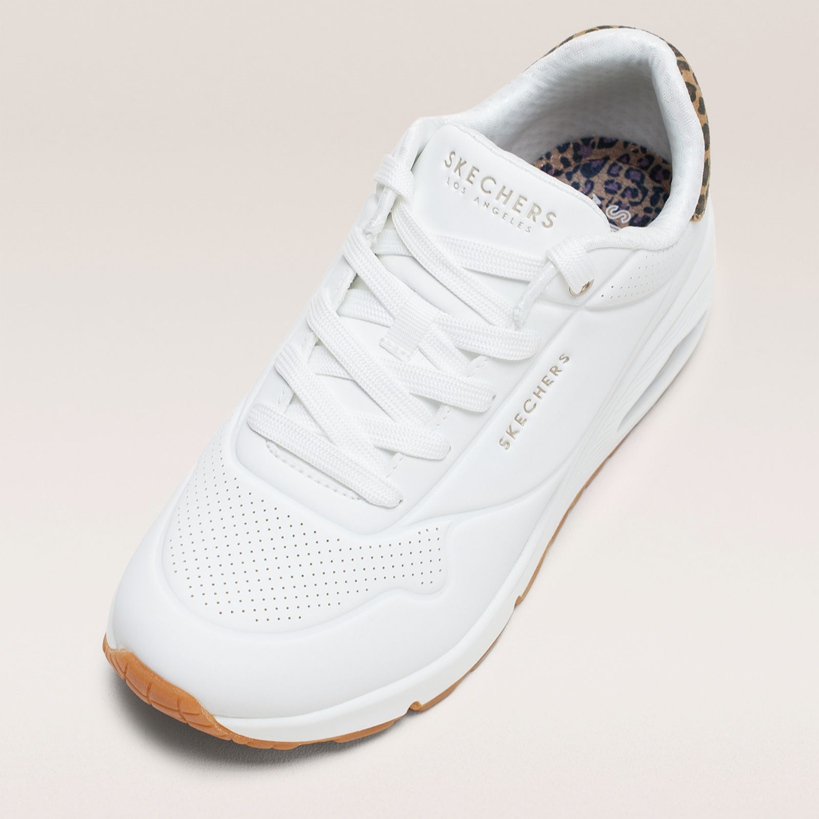 Step into statement style with the Uno Jungle Nite lace up trainers from Skechers, featuring a striking leopard pattern and sleek design touches for a bold, fashion-forward look. Perfect for everything from weekend city strolls to casual meet-ups, these trainers bring a fresh twist to your everyday wardrobe. Try pairing them with cropped jeans and a relaxed tee for effortless street style.