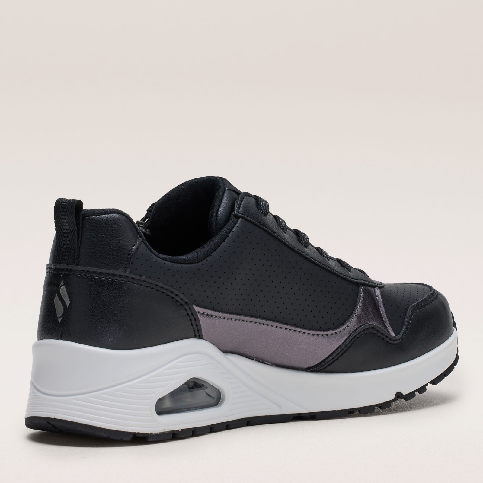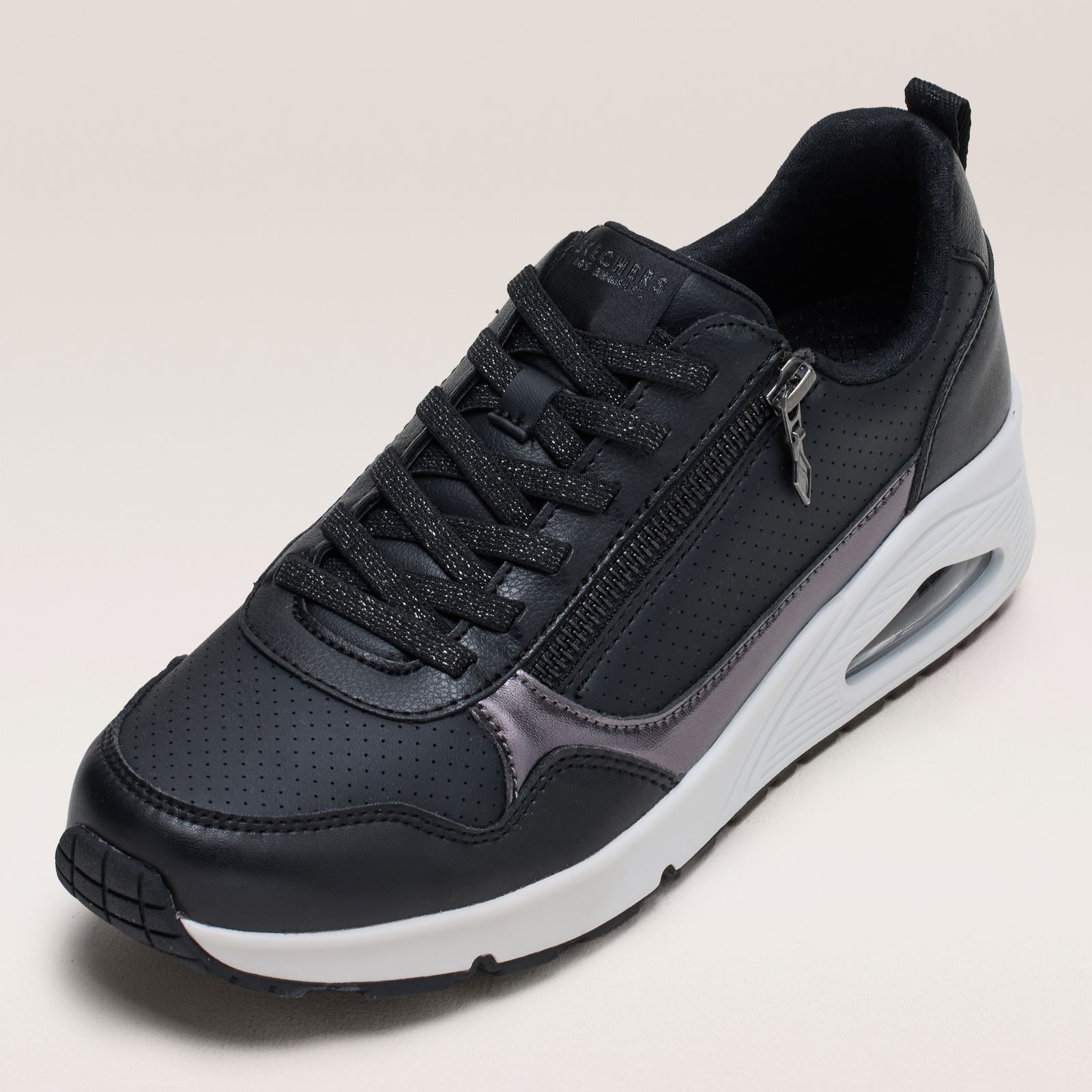 Step up your trainer game with the Skechers Uno trainers, blending sporty style with a sleek metallic trim and quarter zip Duraleather detail for a fashion-forward edge. Perfect for casual days out, weekend adventures or adding a touch of flair to your everyday look, these sneakers deliver comfort and statement style in one. Pair them with cropped jeans and a relaxed tee for an effortlessly cool finish.