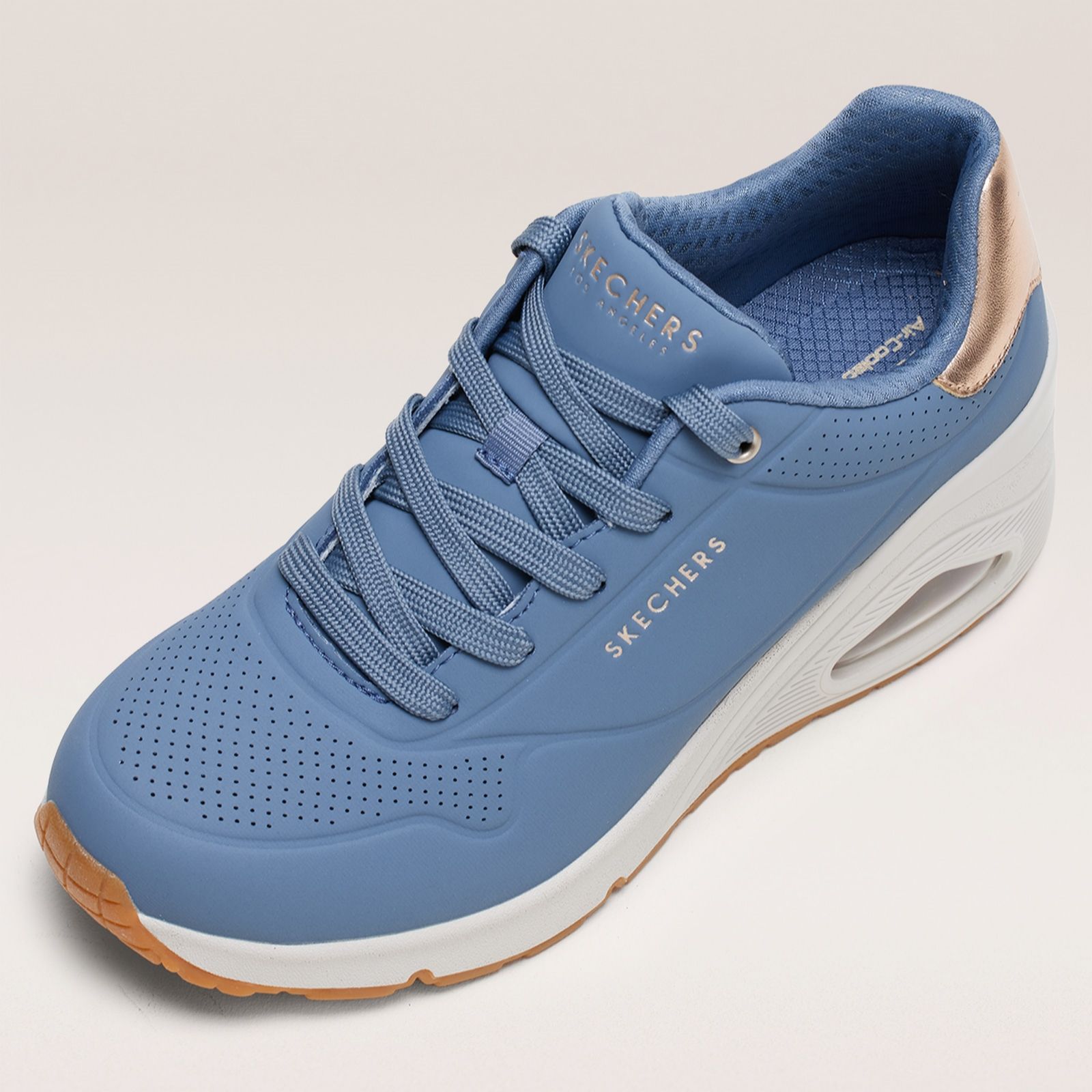 Step up your everyday style with the Uno Wedge Hi Steps lace-up trainers from Skechers, blending sporty flair with an elevated wedge heel and metallic trim for a modern twist. Perfect for running errands, meeting friends or adding a touch of height to casual outfits, these trainers offer both comfort and fashion in one sleek package. Try pairing them with cropped jeans or a relaxed midi dress for a chic, laid-back look.