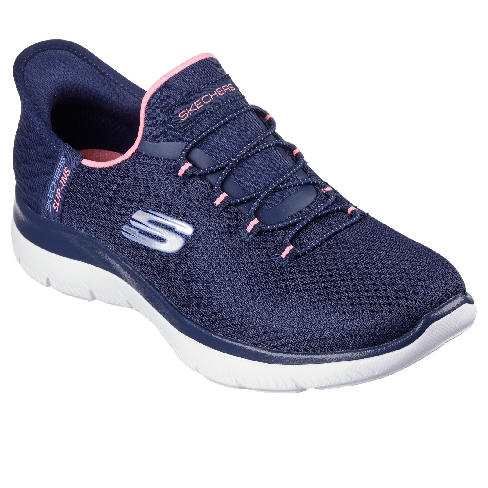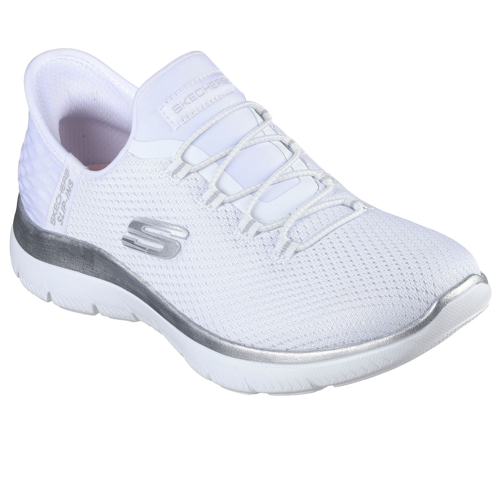 Slip into effortless comfort with the Skechers Wide Fit Summits Diamond Dream Slip-Ins Trainer. These trainers offer a seamless blend of style and practicality, featuring a slip-on design that ensures you can easily slide into them without any fuss. Perfect for everything from a morning jog to a casual day out, pair them with your favourite activewear or casual jeans for a relaxed yet stylish look.