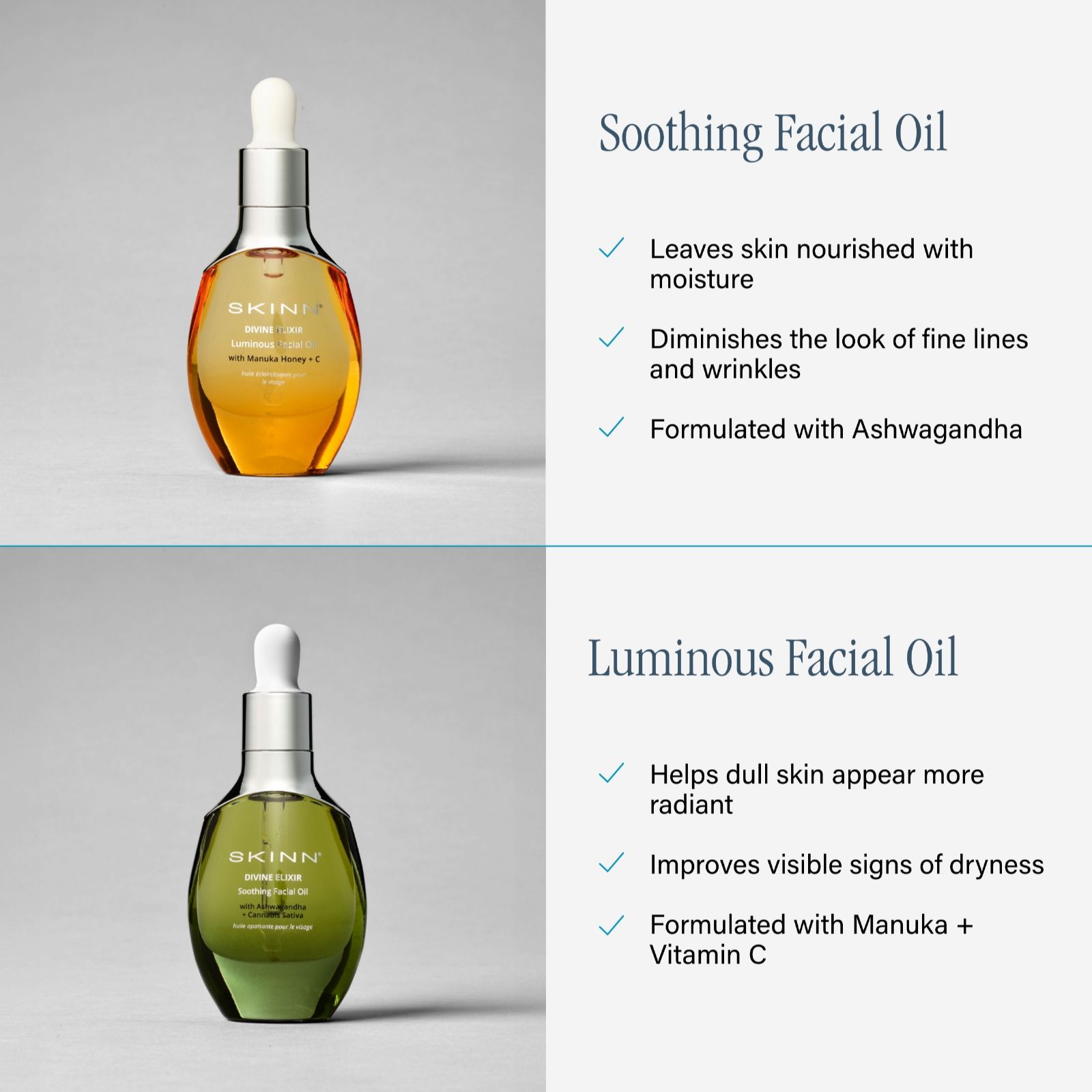 Immerse your skin in the luxury of the Divine Elixir Facial Oil from SKINN. This beautiful face oil is richly hydrating and melts into the skin thanks to its fast-absorbing formula, leaving behind a complexion that looks healthy and feels super soft. Add it to part of your regular routine and fall in love with caring for your skin all over again.