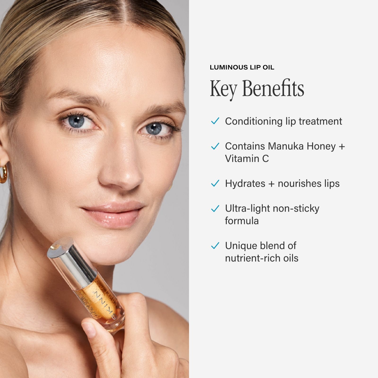 - 1 x Divine Elixir Luminous Lip Oil Golden (5ml) - powered by manuka honey, vitamin C, vitamin E, rice, rosemary and sunflower extracts