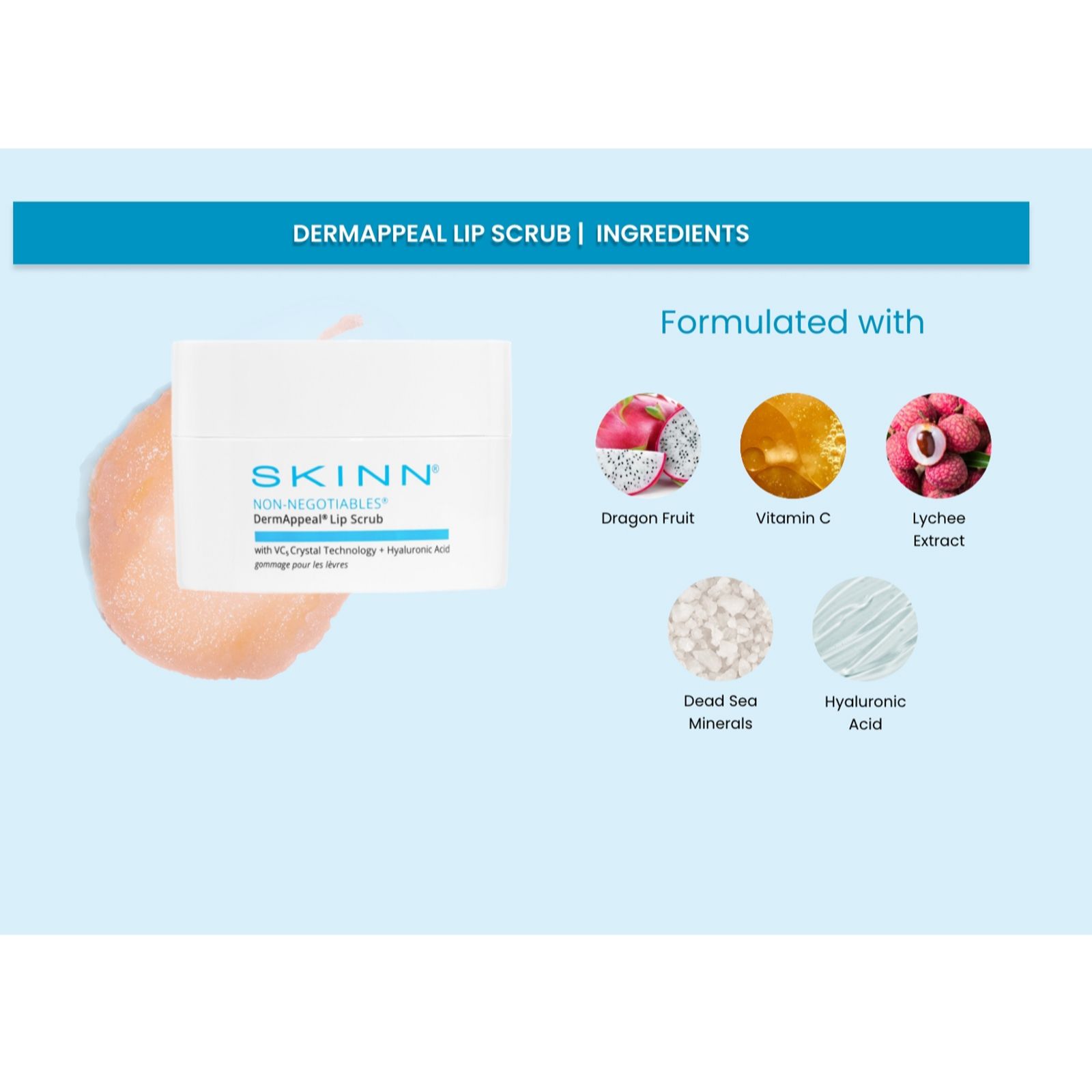 Experience the ultimate lip pampering with this SKINN Non-Negotiables Dermappeal for Lips, an indulgent lip scrub that combines the power of five forms of Vitamin C and advanced stem cell technology. Designed to rejuvenate and protect your lips, this multi-tasking polish works to brighten dull skin and reduce the appearance of vertical lines for a more supple and radiant pout.