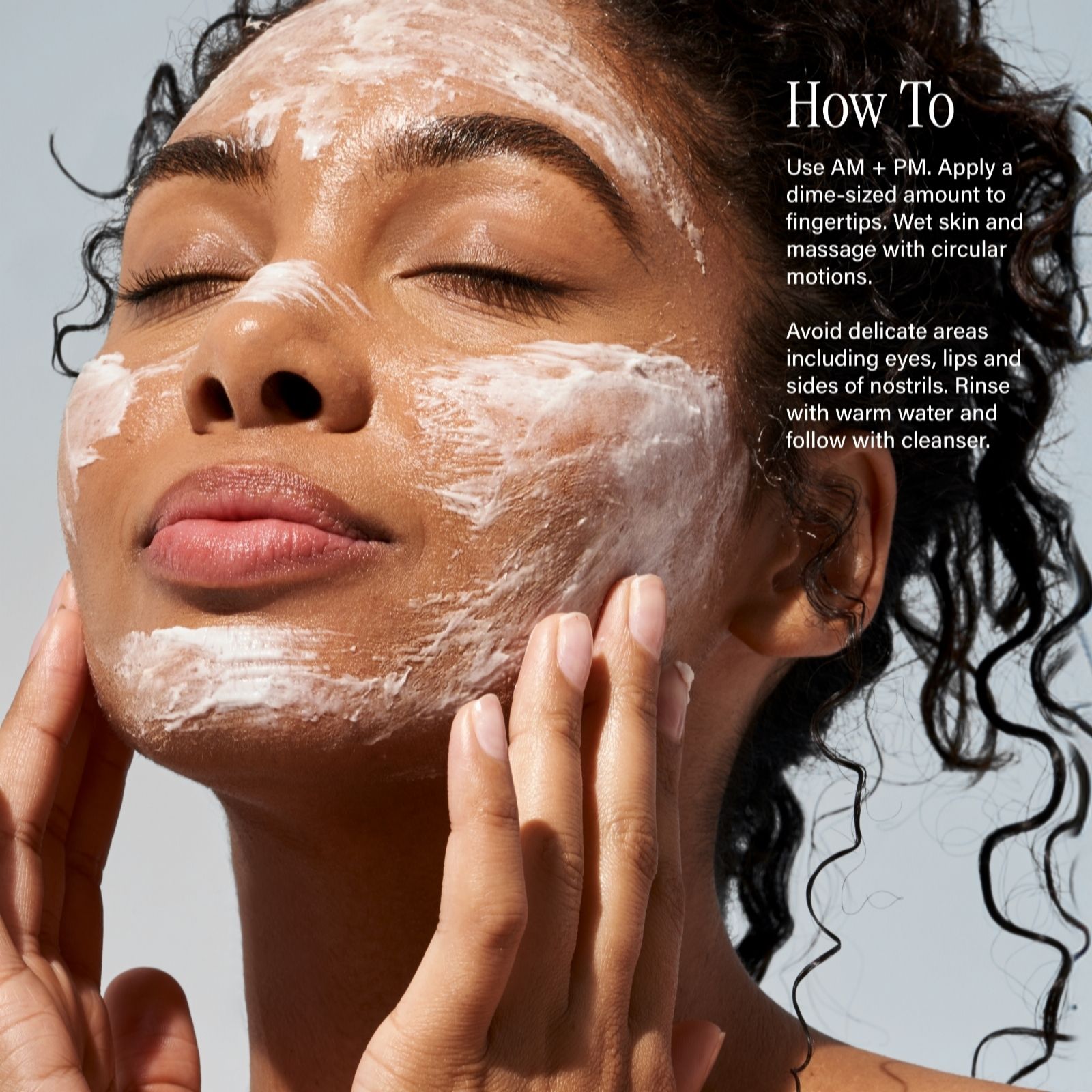 - Wet skin and massage in circular motions, avoiding eyes, lips and sides of nostrils
