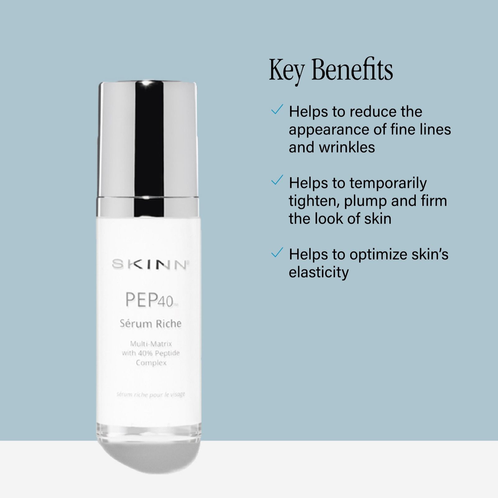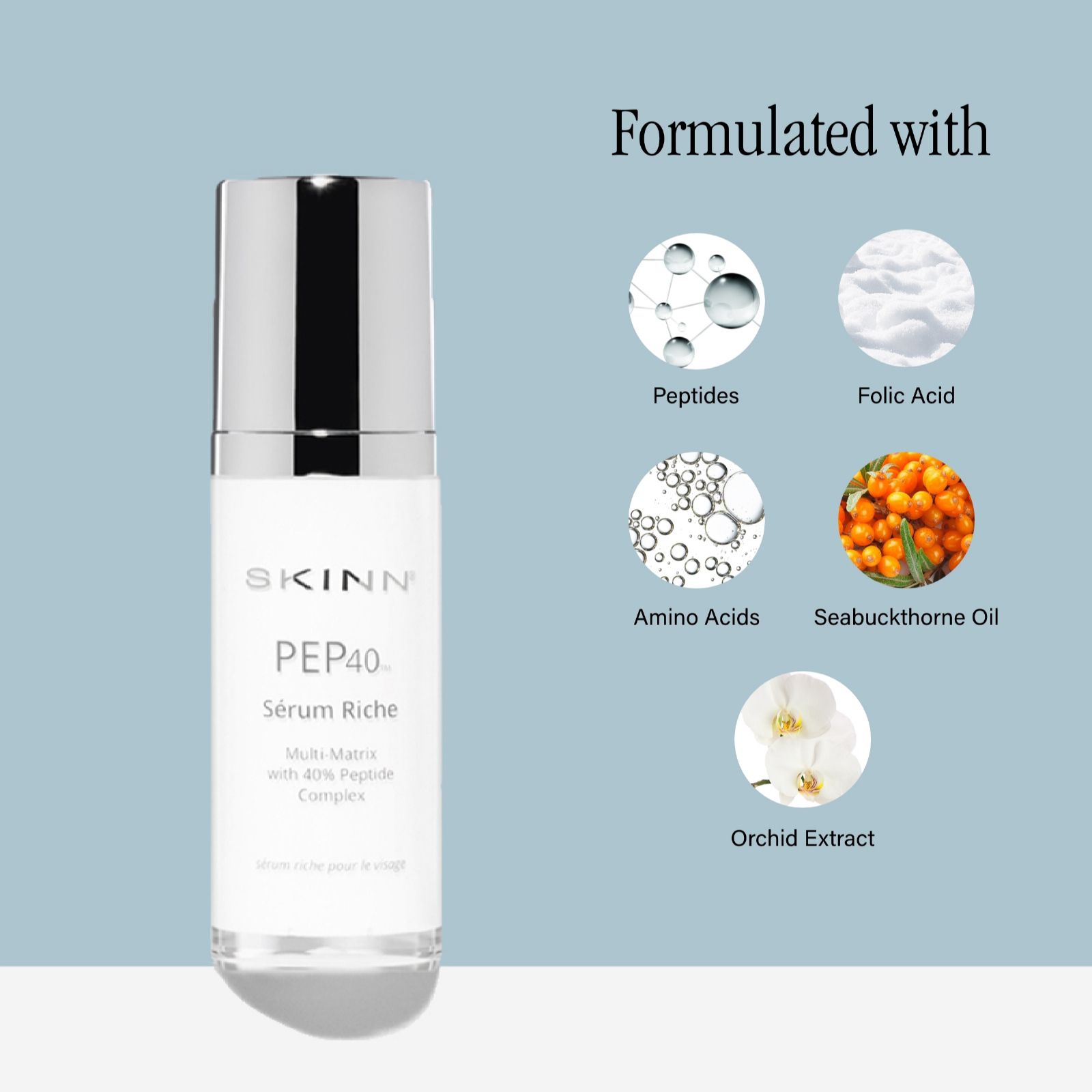 - 2 x Pep40 Serum Riche (33ml) – powered by polypeptides, vitamins, botanical extracts and essential oils