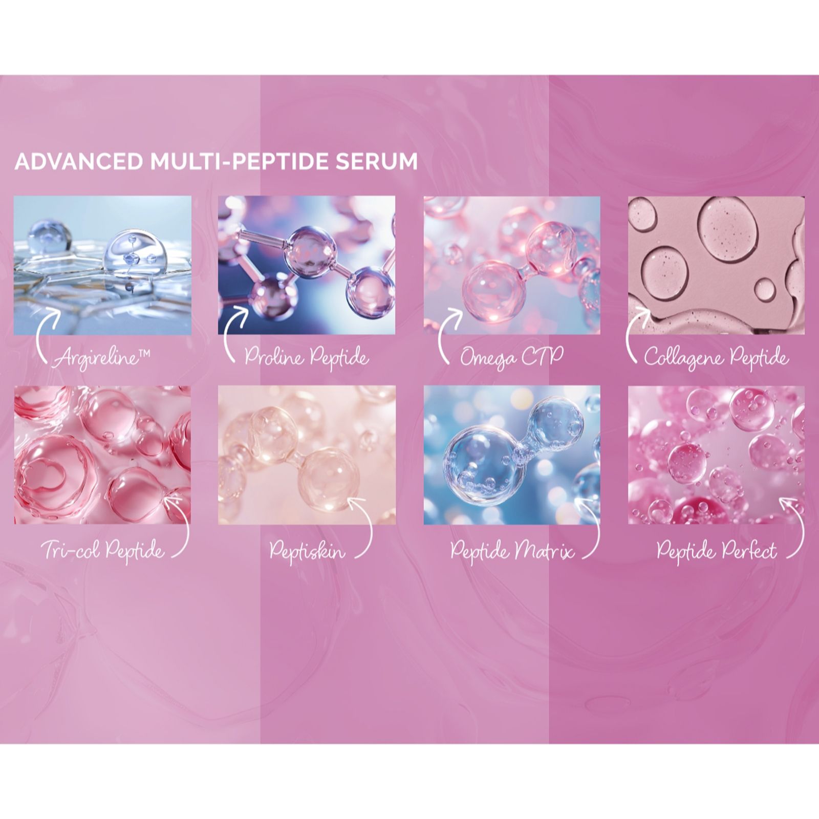 • 1 x NEW Advanced Multi-Peptide Serum (30ml; full size) - featuring eight different peptides plus Argireline to help improve the appearance of skin’s firmness and texture, while promoting the look of a more moisturised, plump complexion