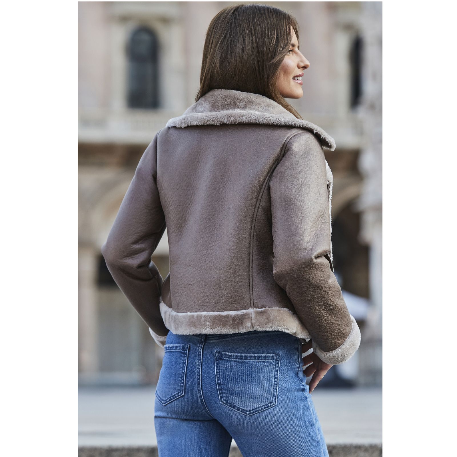 Stride out in the Sosandar cropped faux shearling aviator jacket, a luxe layer that blends timeless style with cosy comfort. With its soft faux leather outer and plush faux shearling lining, it's perfect for braving chilly days while keeping your look effortlessly chic. From weekend coffee runs to evening strolls, this versatile piece works beautifully over casual separates or draped over a flowing dress for an edgy twist.
