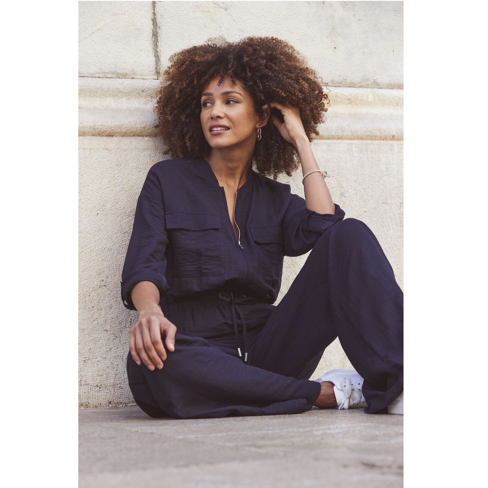 Slip into easy style with this Sosandar jumpsuit, where soft drapey fabric meets a chic utility-inspired look. This jumpsuit's wide legs and elasticated waist promise comfort all day, while the zip front neckline and tab detail sleeves add just the right amount of polish. Perfect for everything from laid-back brunches to smart-casual evenings, simply pair with trainers for an effortless finish.
