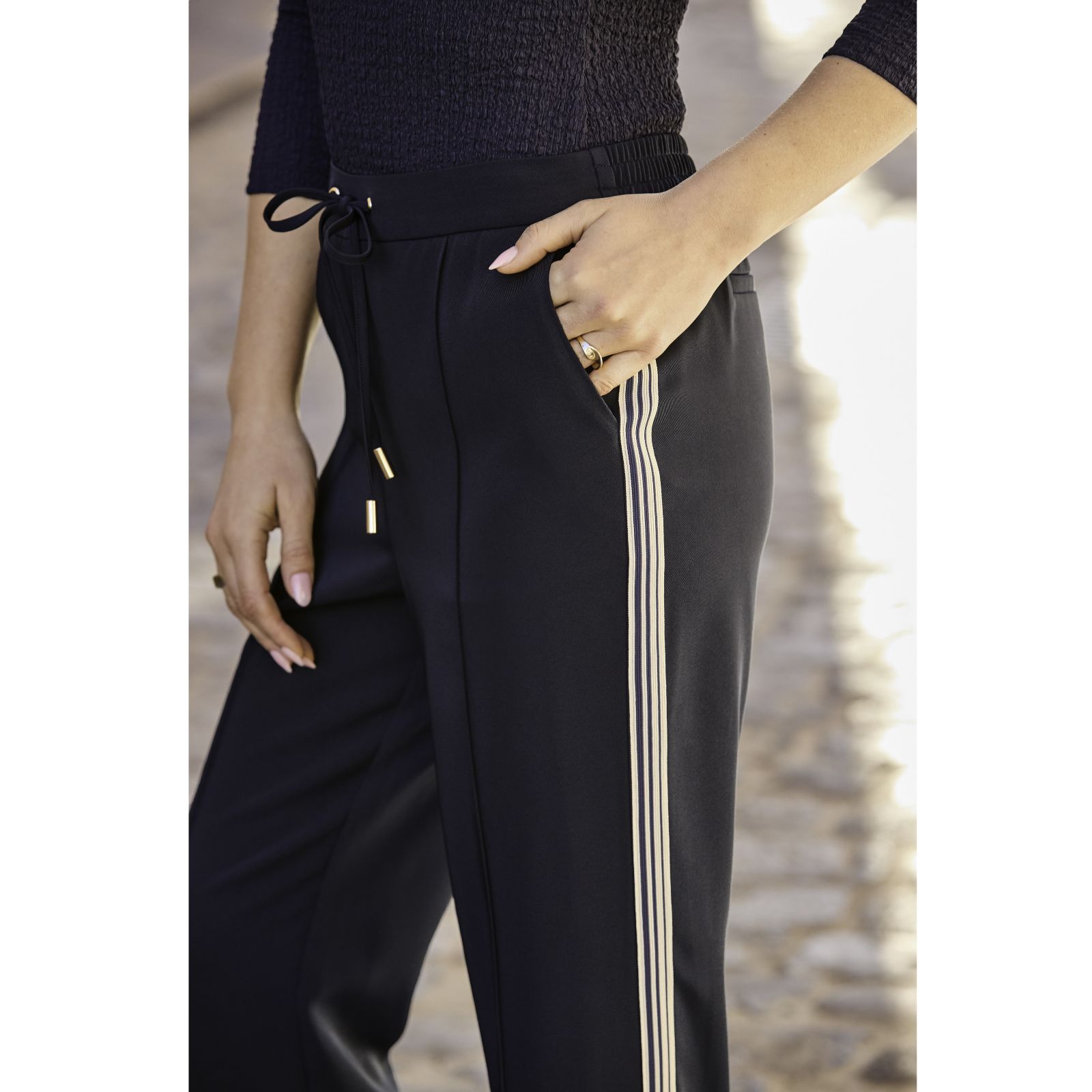 Give your everyday style a refresh with these Sosandar navy side stripe tapered leg trousers. The relaxed yet chic silhouette is designed for comfort, while the luxe side stripe adds a touch of sophistication. Perfect for work when paired with courts or for weekends with trainers, these versatile trousers are sure to become a staple in your wardrobe. Try teaming them with a crisp white shirt for a polished finish.