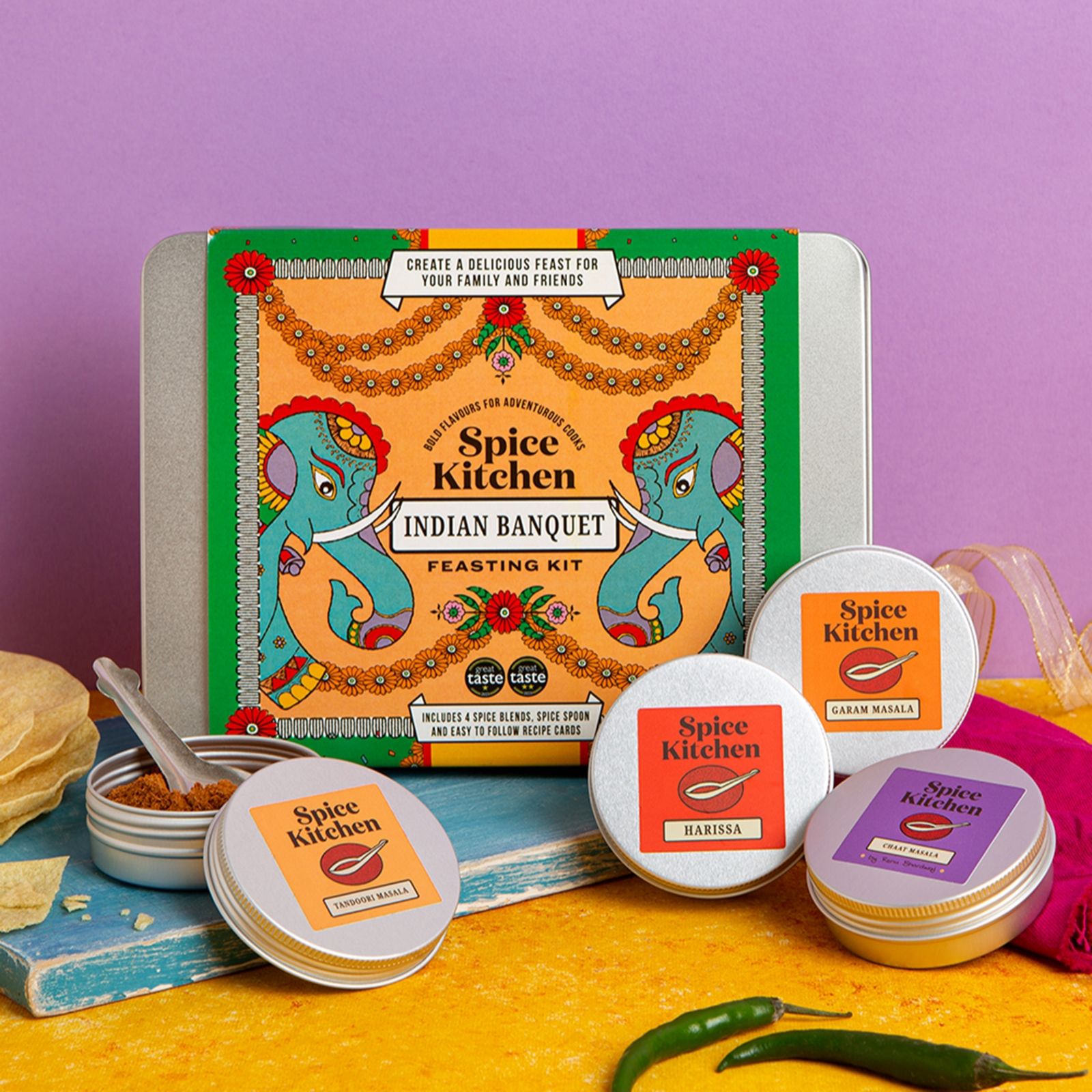 - 1 x Indian Banquet Feasting Kit with Tandoori Masala, Garam Masala, Chaat Masala & Harissa (120g)