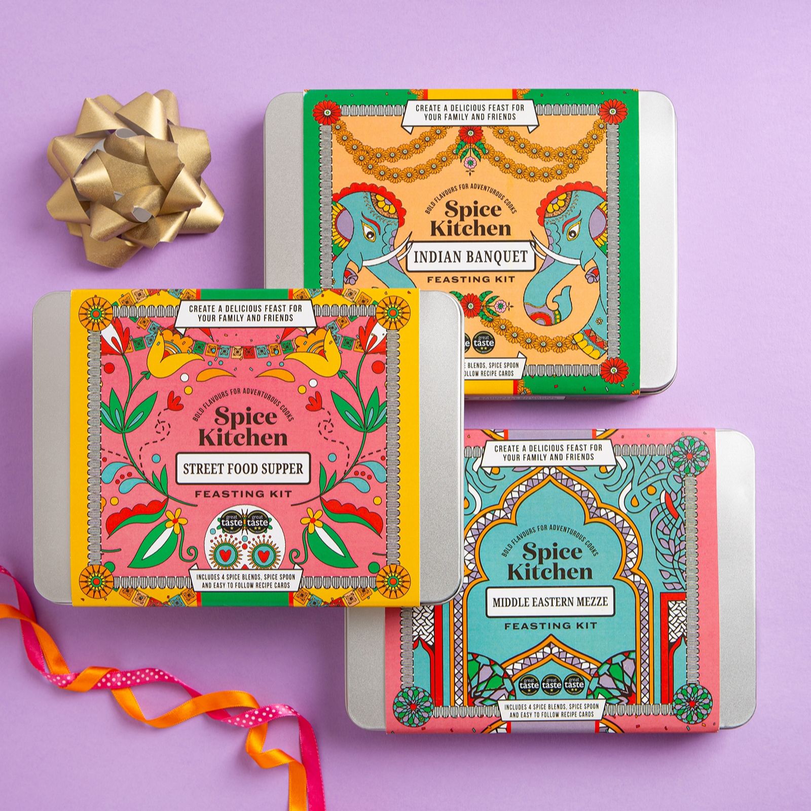 Spice up your cooking adventures with the Vibrant Feasting Kit from Spice Kitchen, offering a choice of Indian Banquet, Middle Eastern Mezze or Street Food Supper. Each kit contains four expertly blended spices, easy-to-follow recipes and a handy shopping list, making it perfect for creating flavour-packed feasts at home. Ideal for dinner parties, family meals or trying something new, every purchase also supports Save the Childrens vital work.