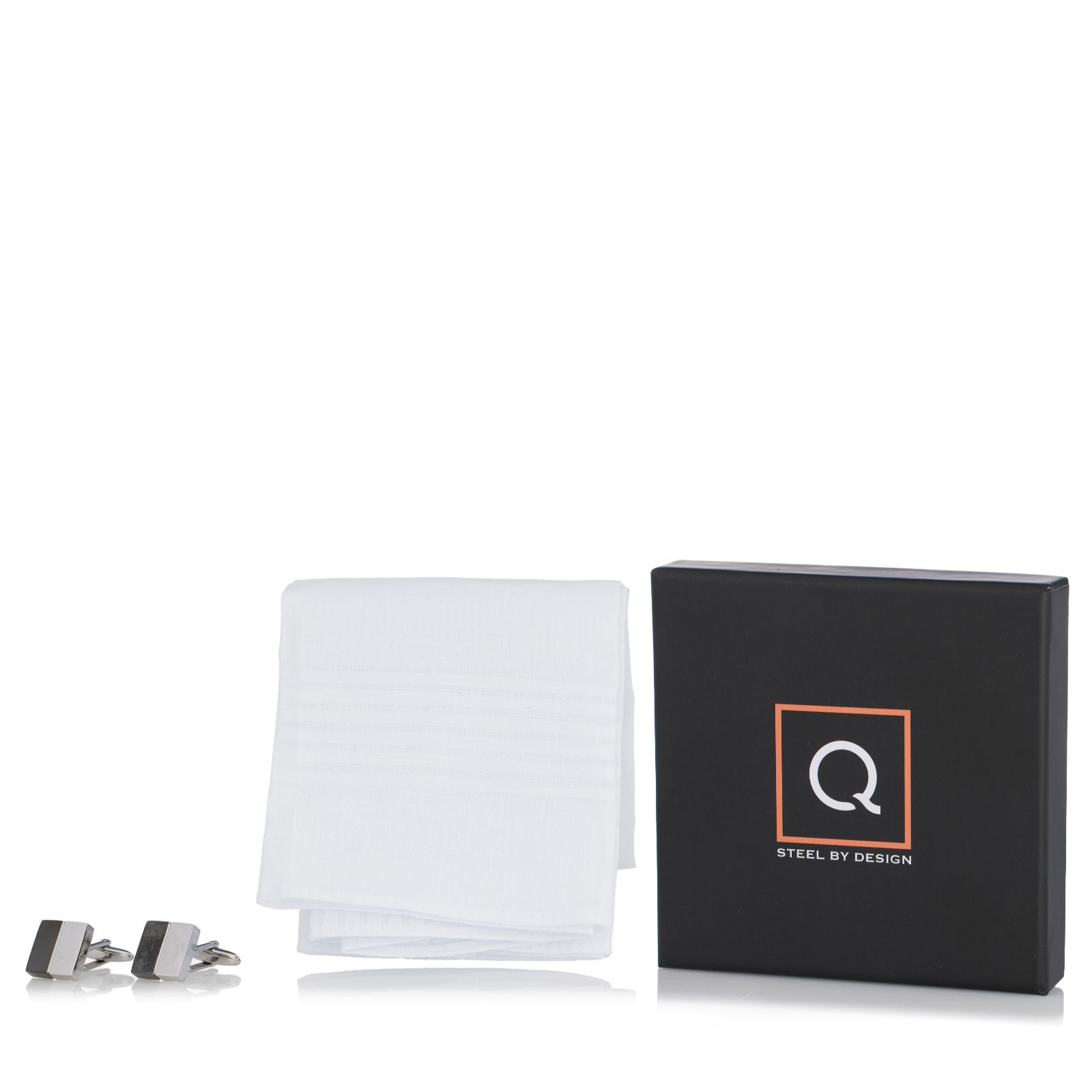 Steel by Design Mens Handkerchief and Cufflink Cuff Set Stainless Steel
