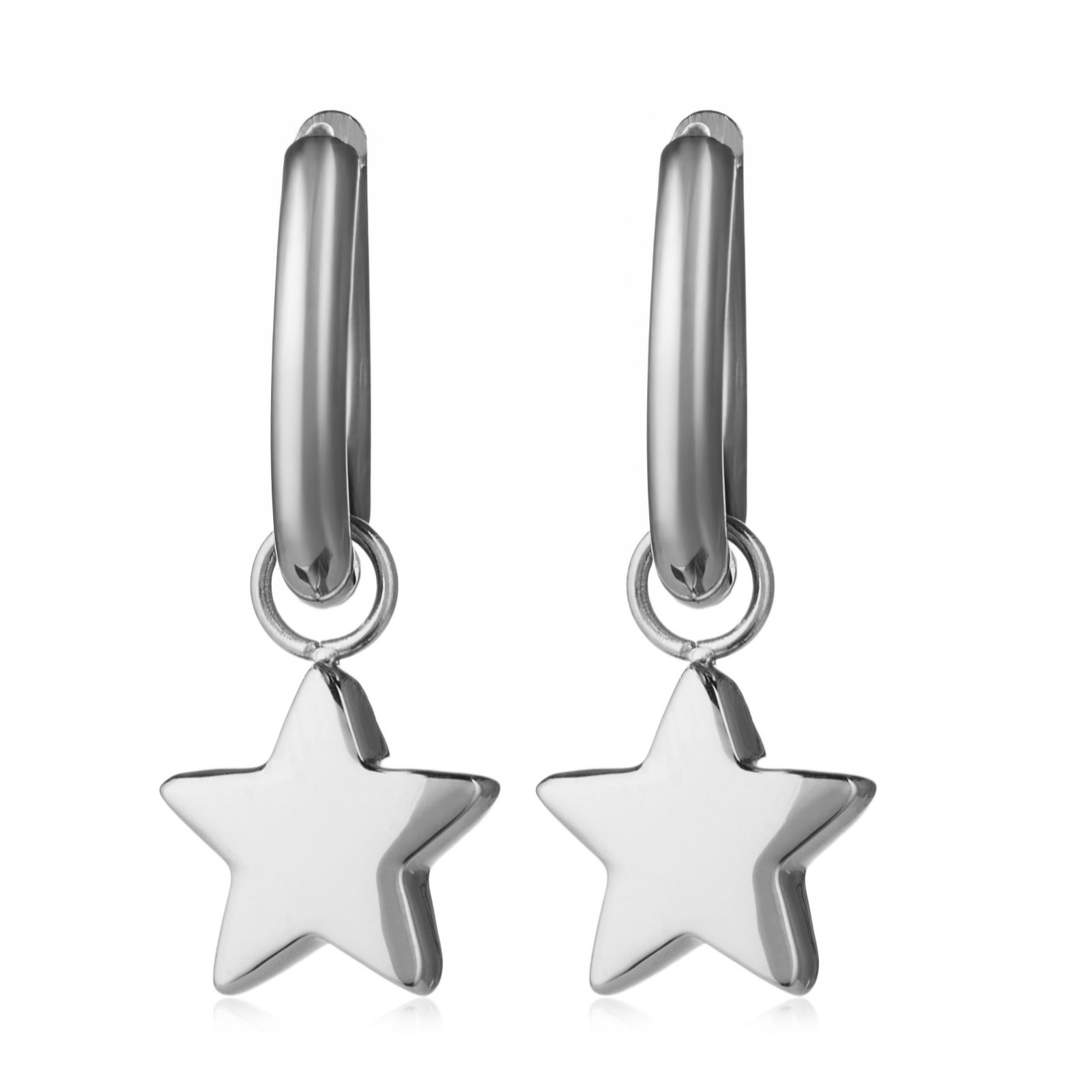 Shine like the night sky with the enchanting star necklace and earring set from Steel by Diamonique. Crafted in stainless steel with a gleaming plated finish, the necklace features a star pendant and a sparkling Diamonique stone at the extender, while the matching hoops boast removable star charms for customisable styling. Presented in a beautiful navy star box, it's a stellar gift or a radiant addition to your own collection.
