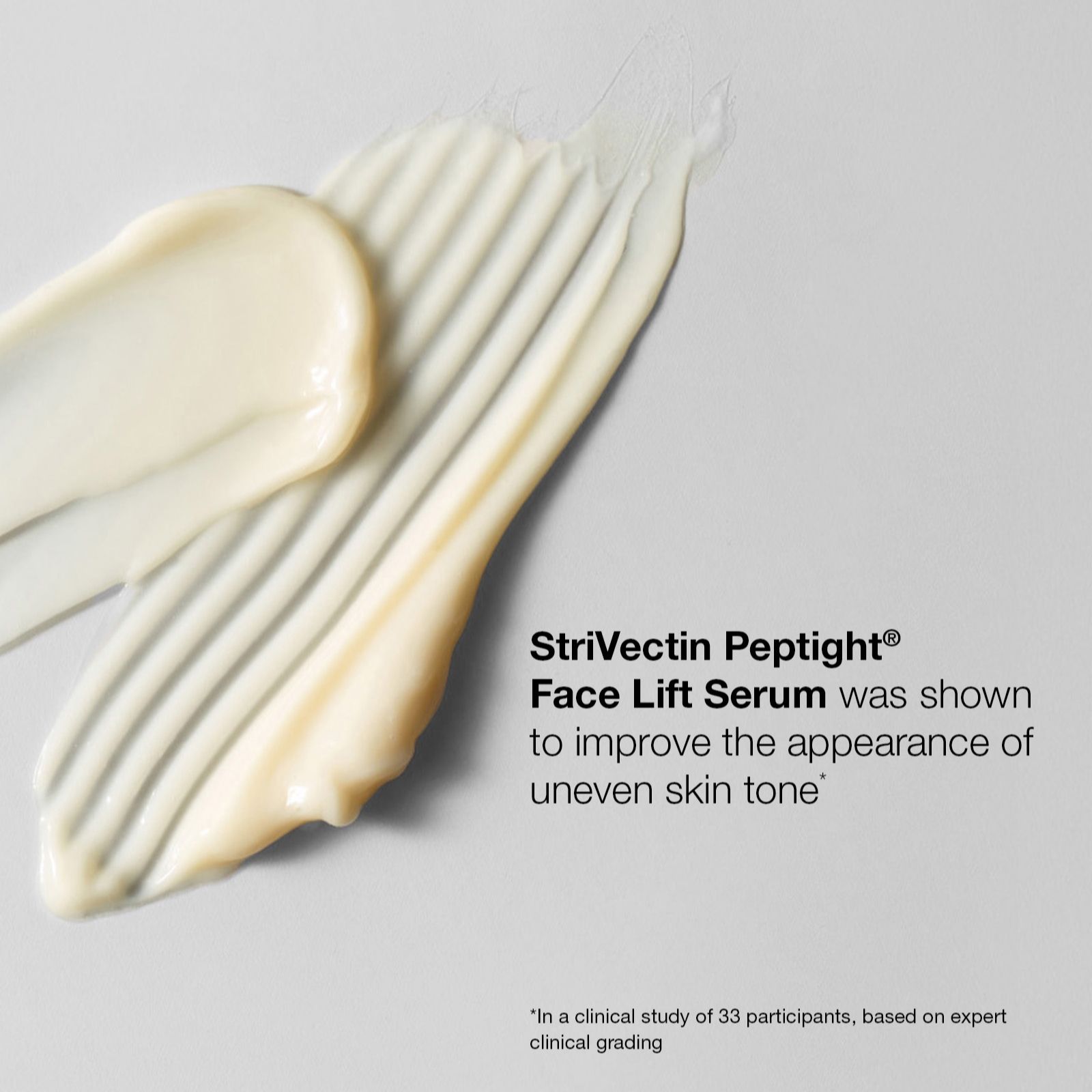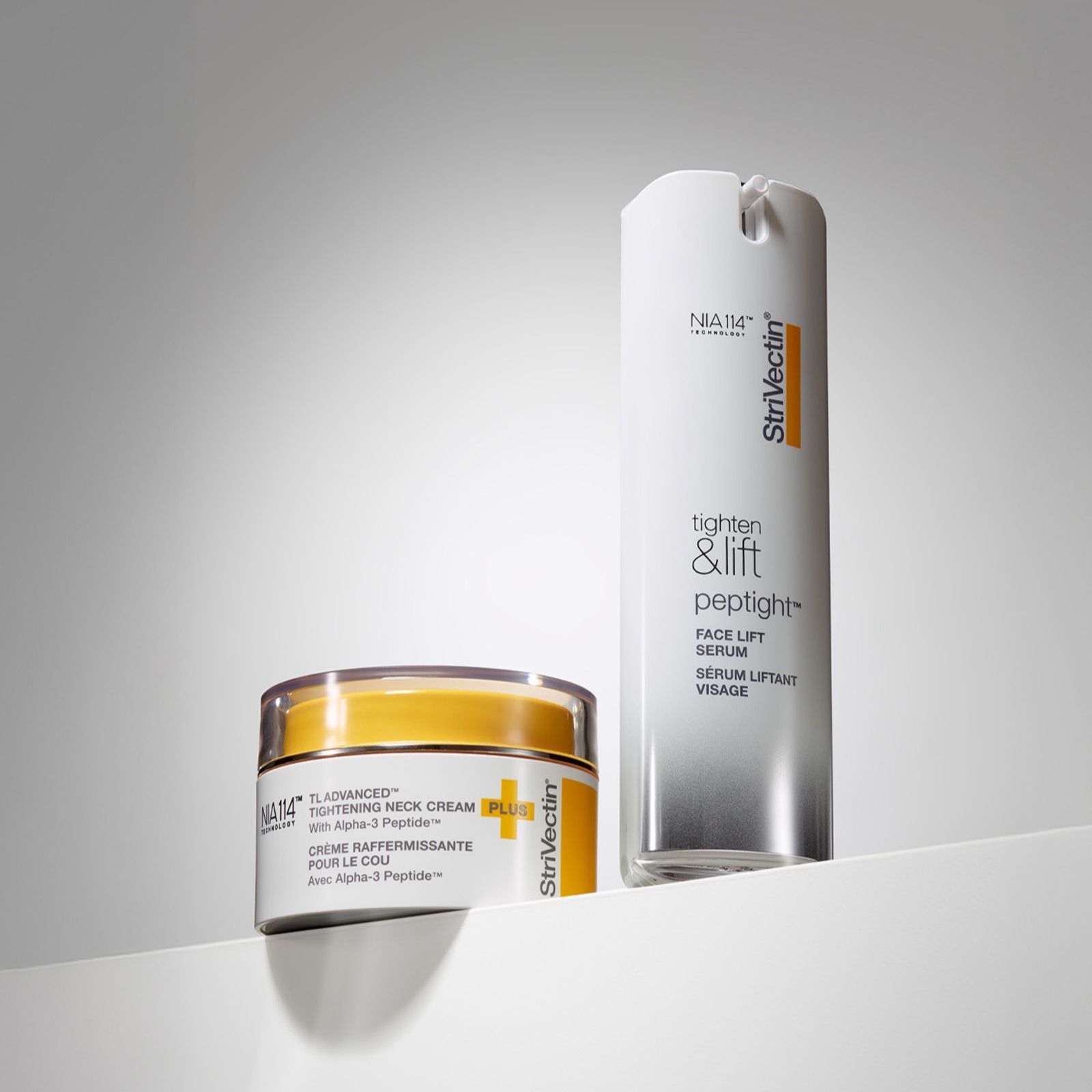 Elevate your skincare routine with the Advanced Face & Neck Treatment Set from StriVectin. This dynamic duo includes TL Advanced Tightening Neck Cream PLUS and Peptight Face Lift Serum, which work together to help your skin appear smoother and firmer for a more youthful look. Together, they create a seamless chin to chest routine that can be easily integrated into your day, morning or night.