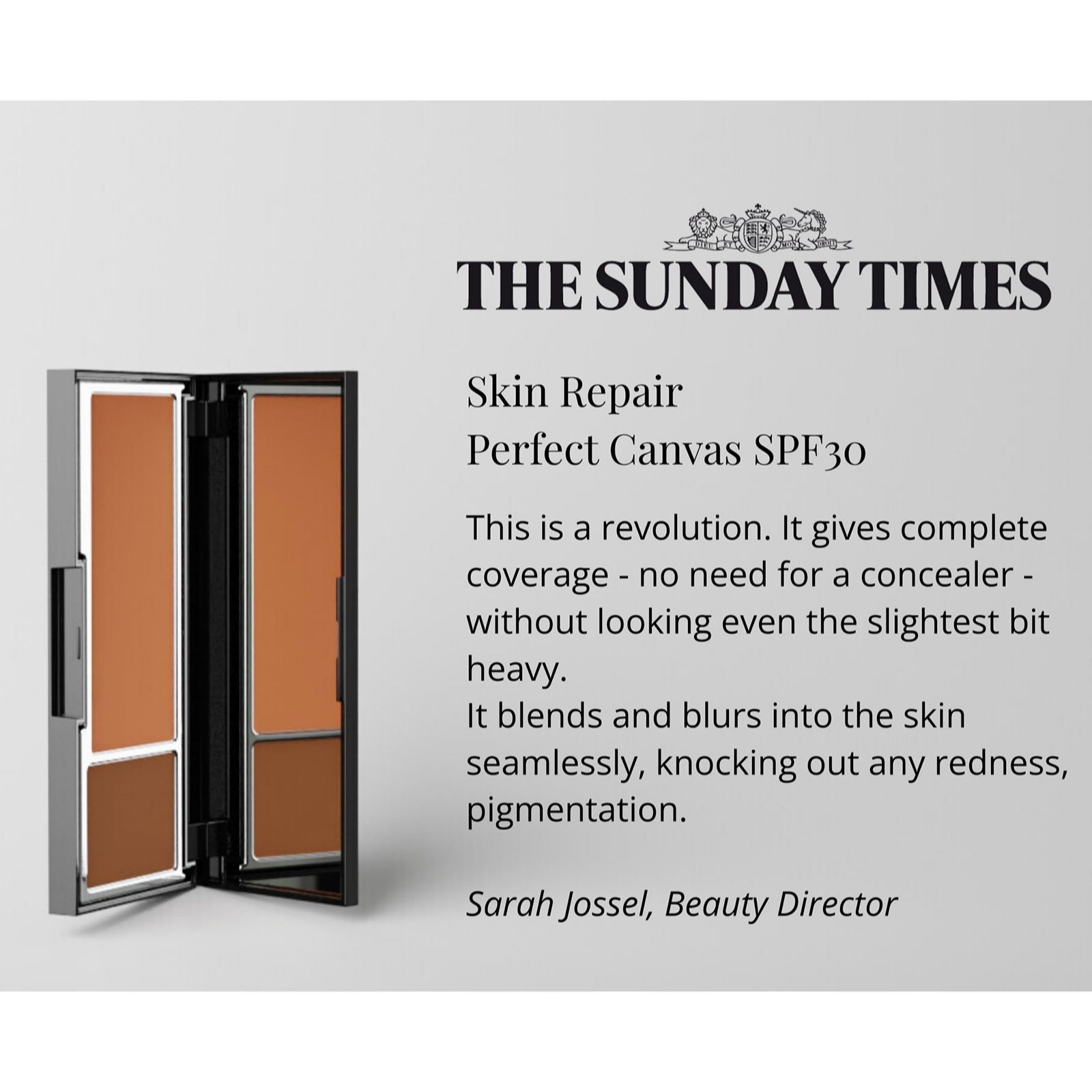 - 1 x Skin Repair Perfect Canvas Treatment Foundation SPF30 (7.6g) - choice of Dark, Light, Medium or Soft Dark