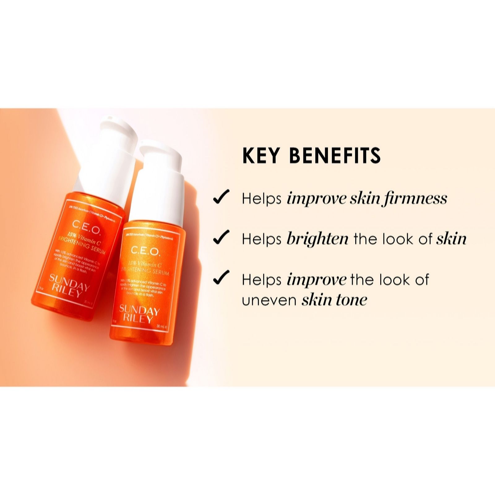 - you'll receive the popular C.E.O. 15% Vitamin C Brightening Serum in this edit, a hydrating formula that works to instantly illuminate your complexion, leaving it with a luminous glow.