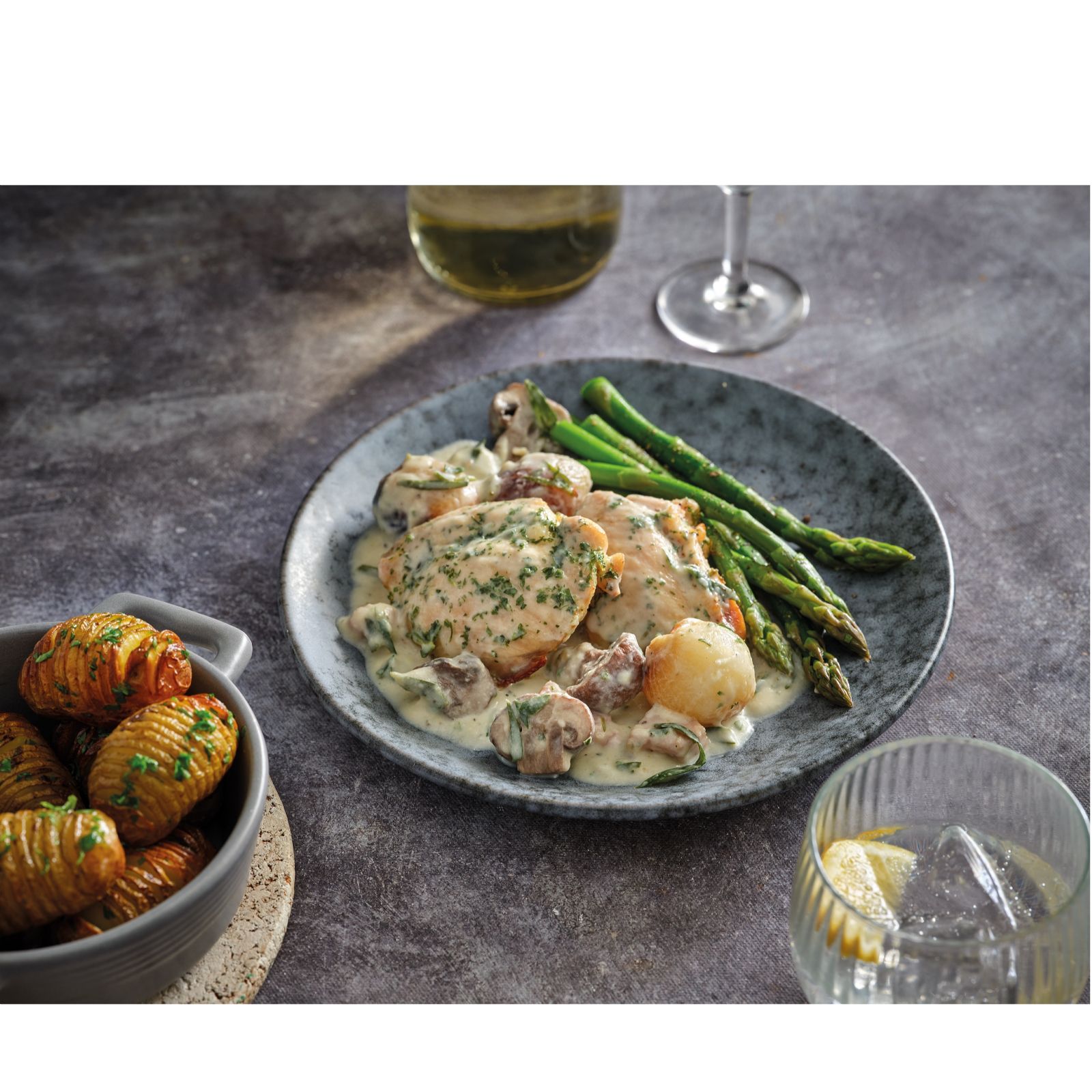 - Contains alcohol as an ingredient – lasagne al forno, chicken and spring vegetable risotto and tarragon chicken