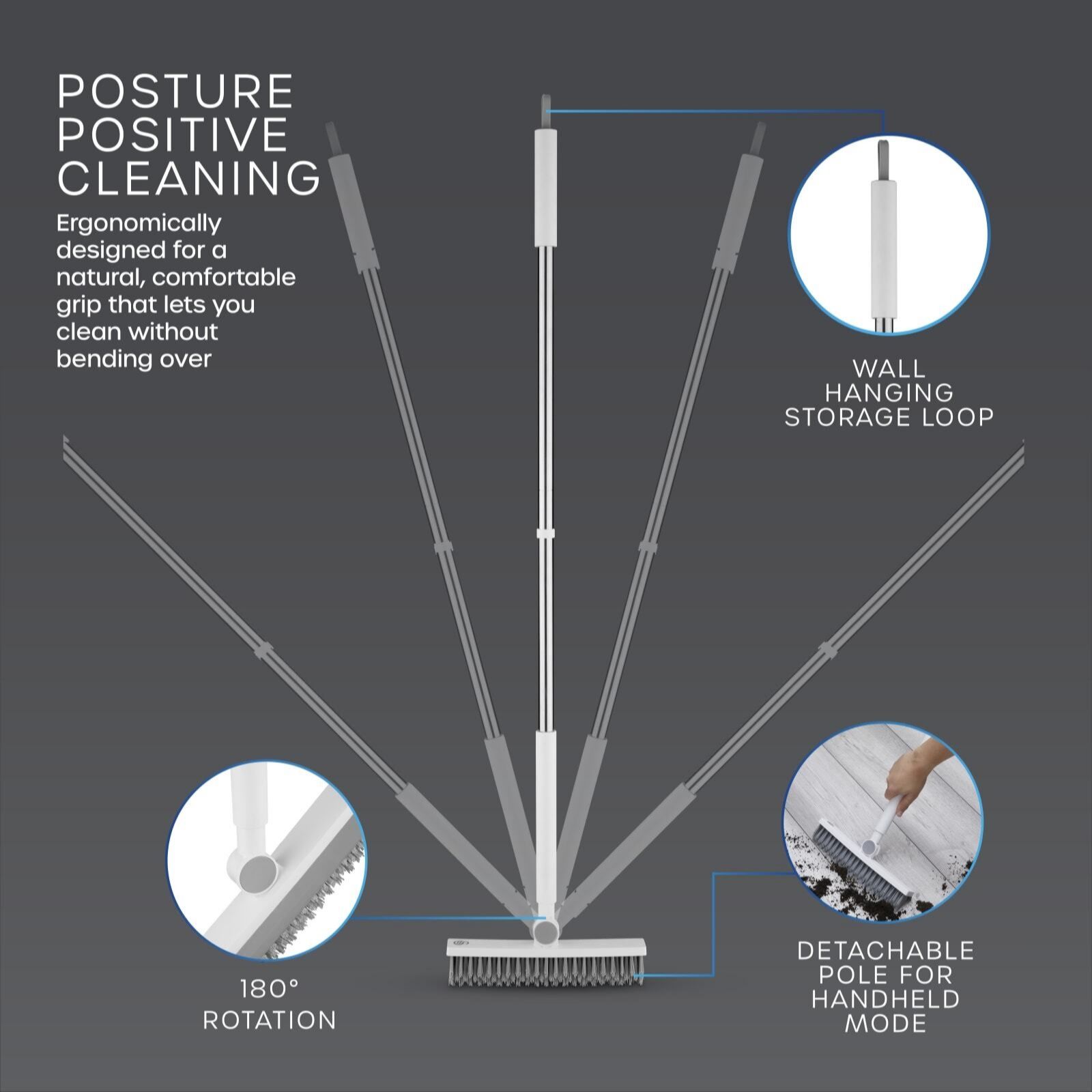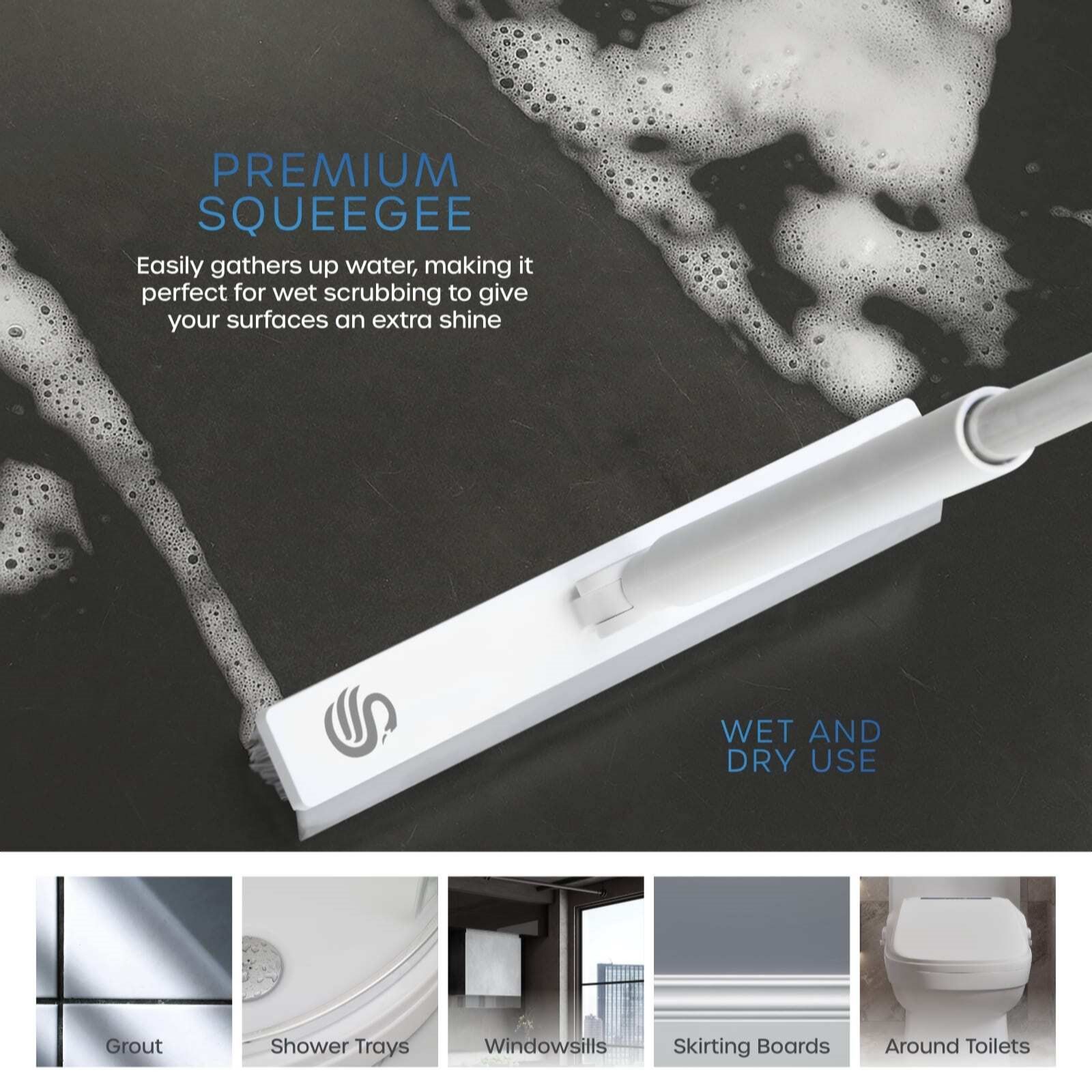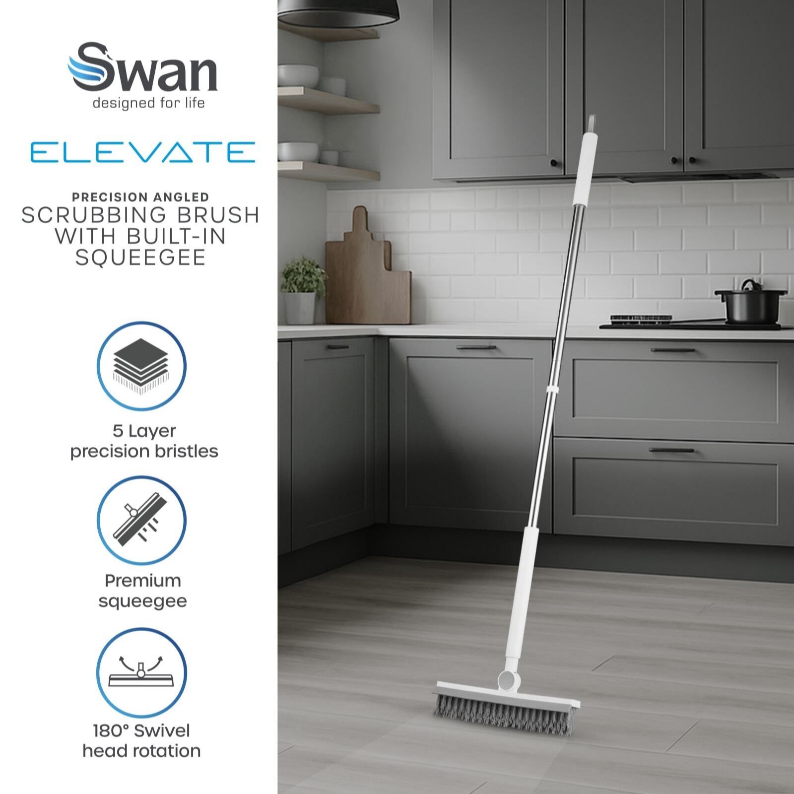 Tackle stubborn dirt and grime with the Swan Elevate Angled Scrub Brush, designed with precision V-shaped bristles that reach deep into crevices, grout lines and corners. Its 180-degree swivel head glides from floor to ceiling, while the built-in squeegee lifts stains and water for a sparkling finish. The ergonomic long handle means you can clean without bending or straining, making tough jobs feel effortless.