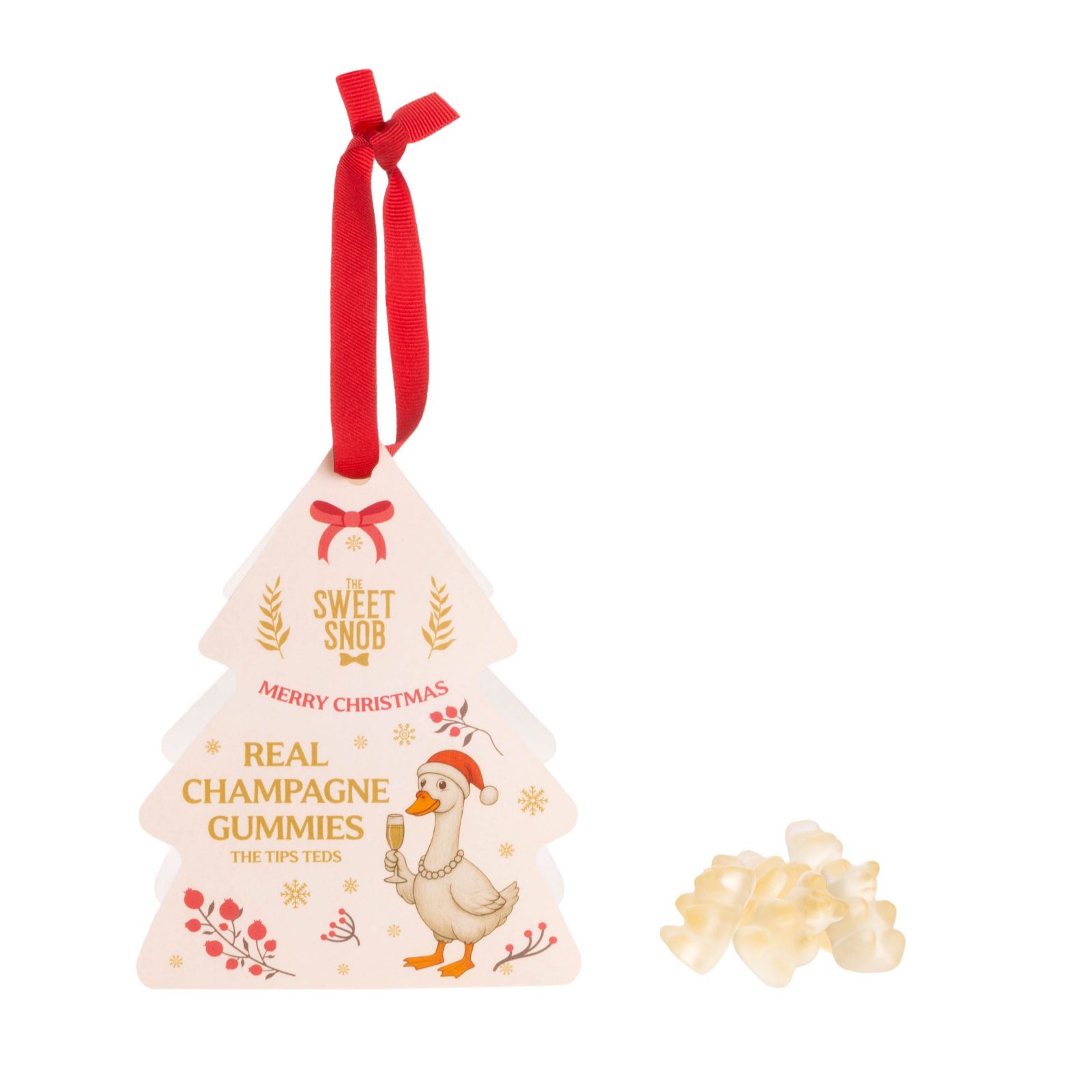 - 3 x Real Champagne Gummies (56g each) - in festive bauble boxes