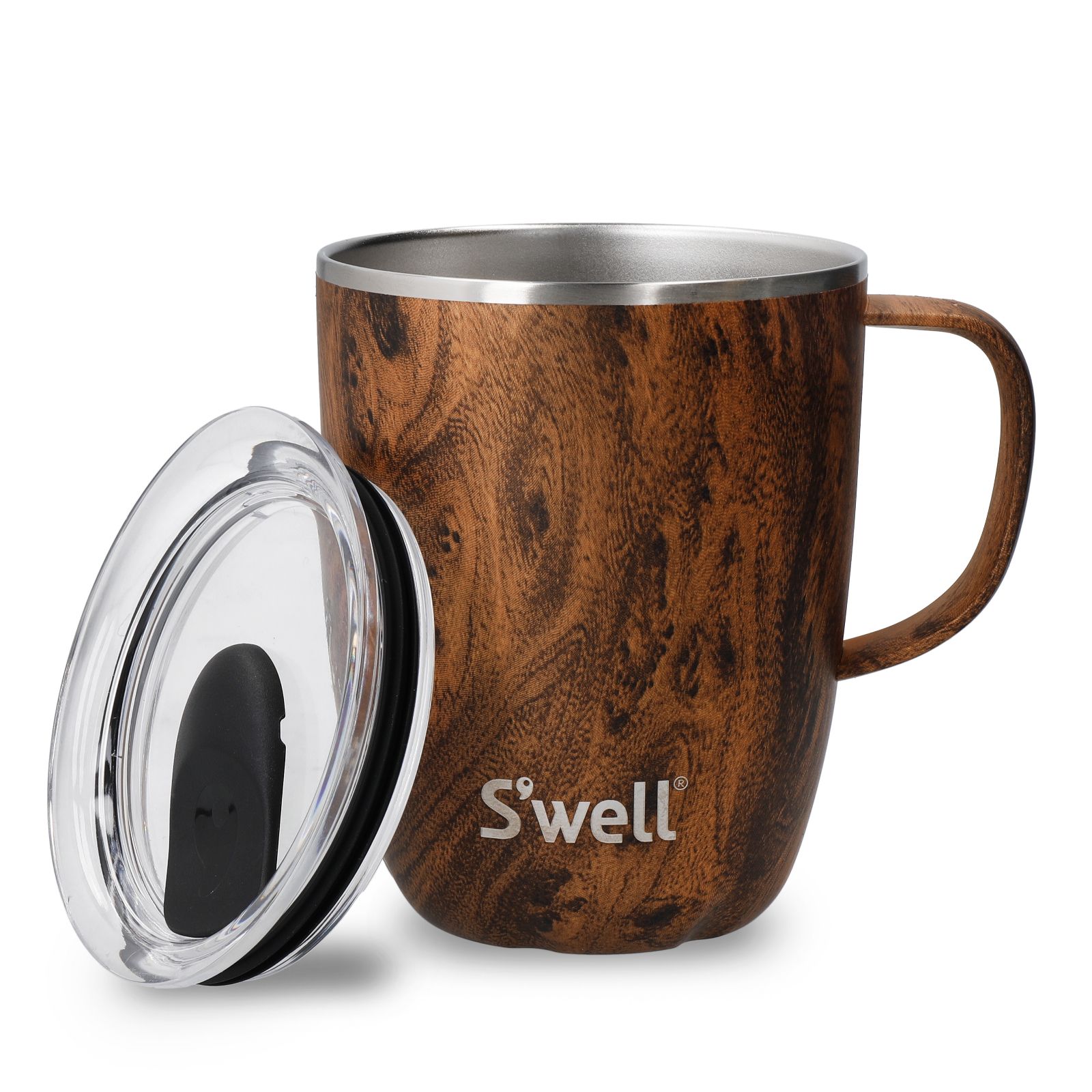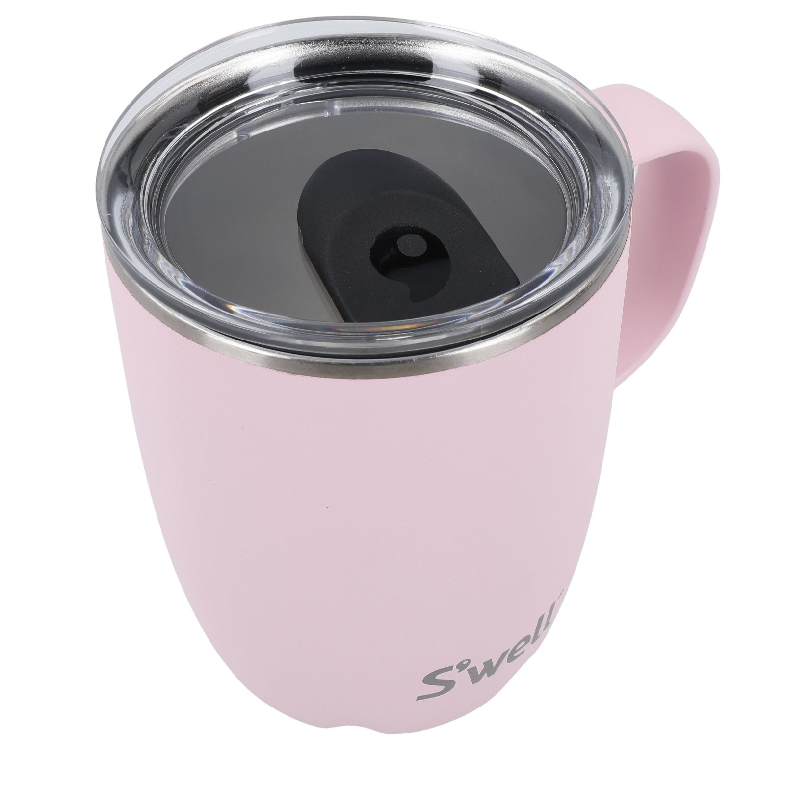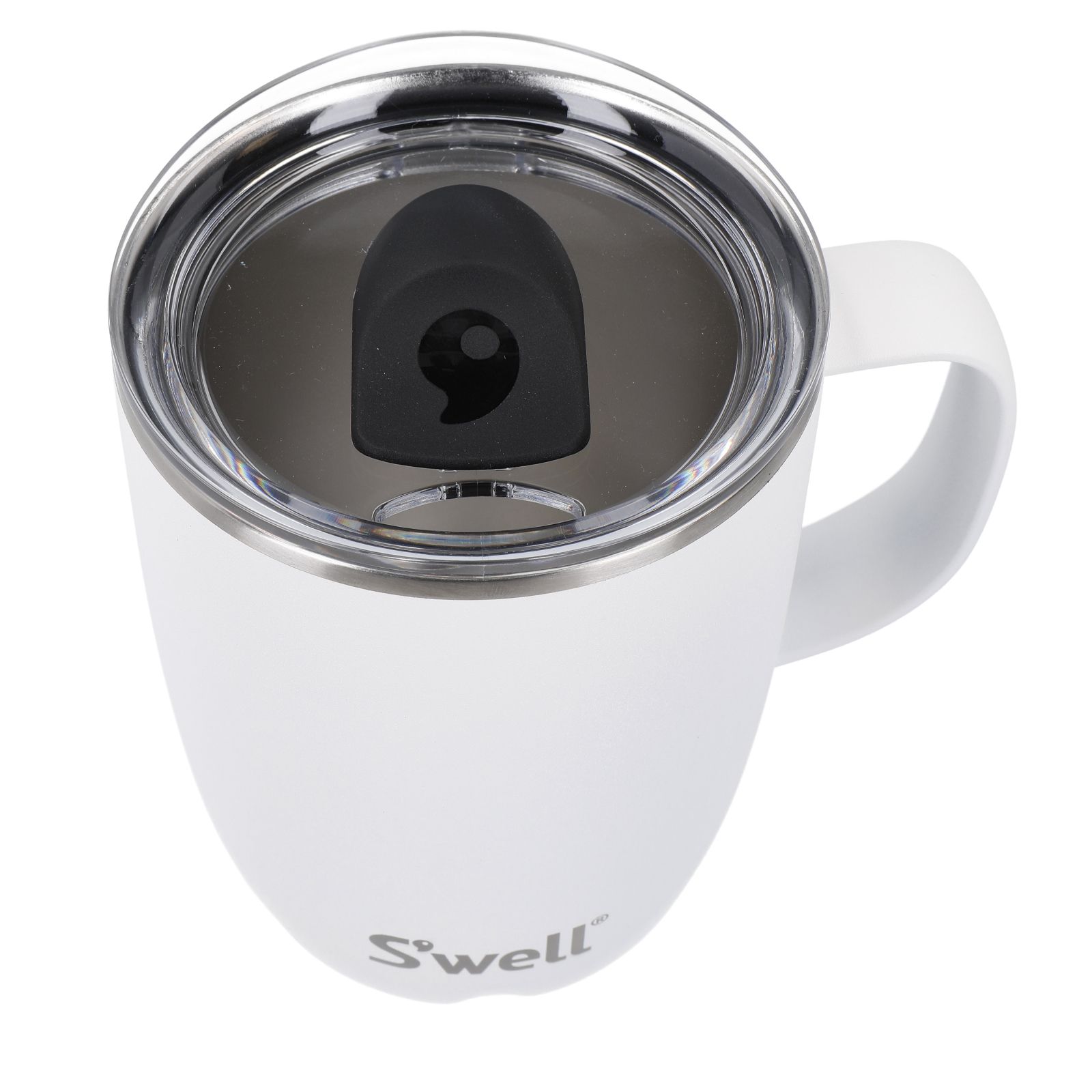 Enjoy your favourite drinks on the go with the S'well insulated mug, featuring a sleek handle, splash-proof slide-open lid and a size that fits most cup holders. Crafted with Therma-Swell Technology, this mug keeps your beverages hot for up to five hours or cold for up to 18, making it perfect for your morning coffee, afternoon tea or iced juice. Durable, reusable and stylish, it's a must-have for everyday hydration or a cosy coffee on the go.