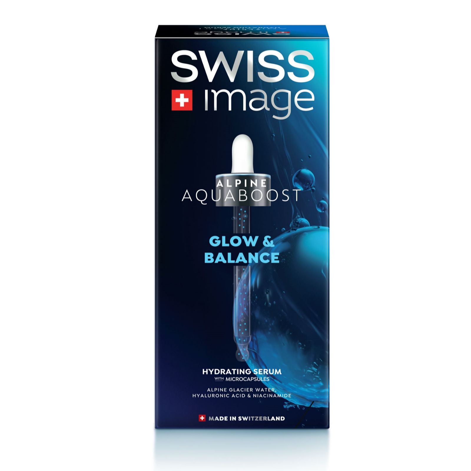 • 1 x Aquaboost Glow & Balance Hydrating Serum (30ml) – enriched with Swiss Alpine Glacier Water, hyaluronic acid, niacinamide and gentiana lutea root extract