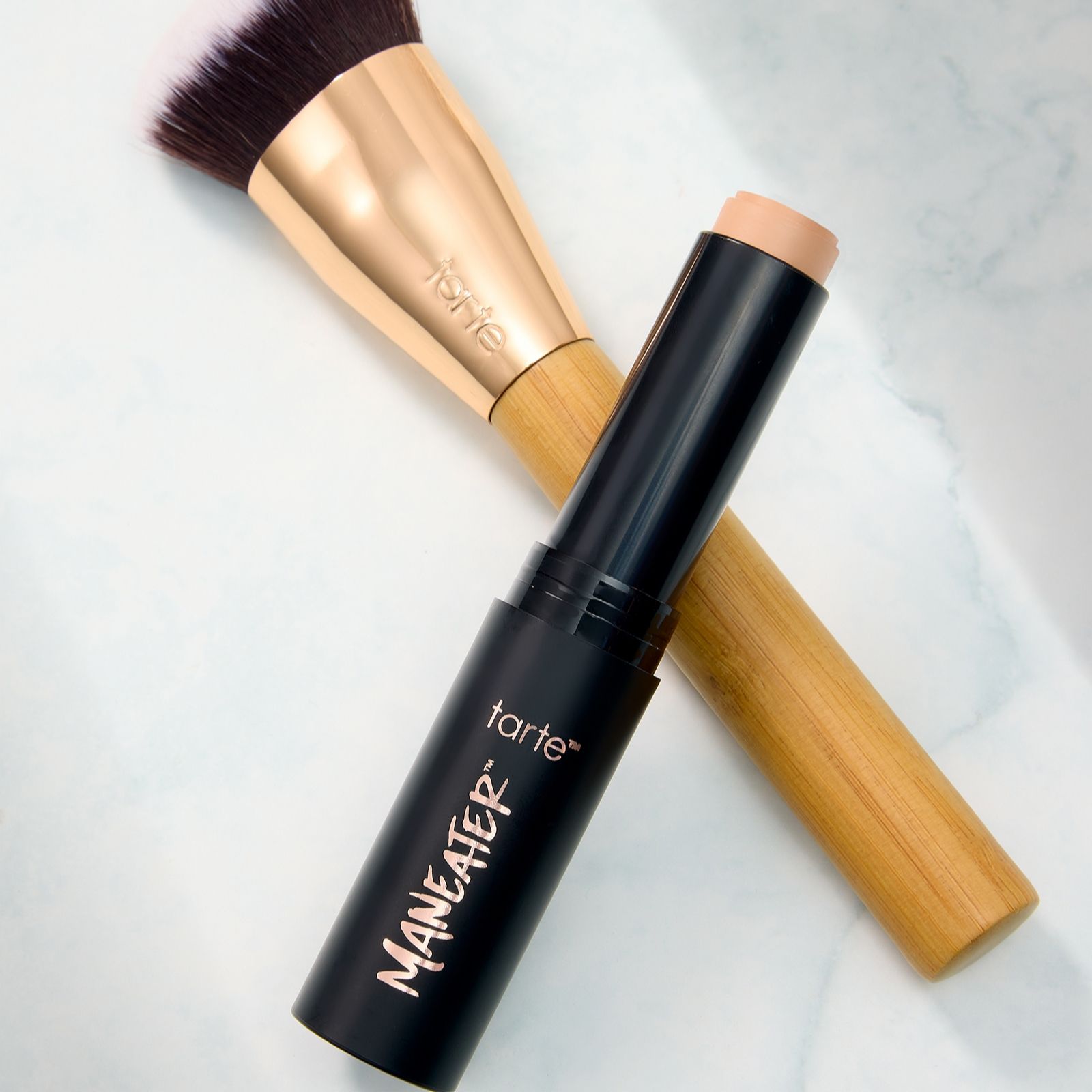 Perfect your complexion with the Maneater Poreless Stick Foundation & Brush from tarte, a versatile duo that helps you achieve smooth, even coverage with ease. The creamy stick foundation glides onto your skin effortlessly, ideal for quick touch-ups or full-face application, while the custom brush is designed to help blend seamlessly. Whether for everyday wear or a polished evening look, this set offers a convenient way to enhance your make-up routine.