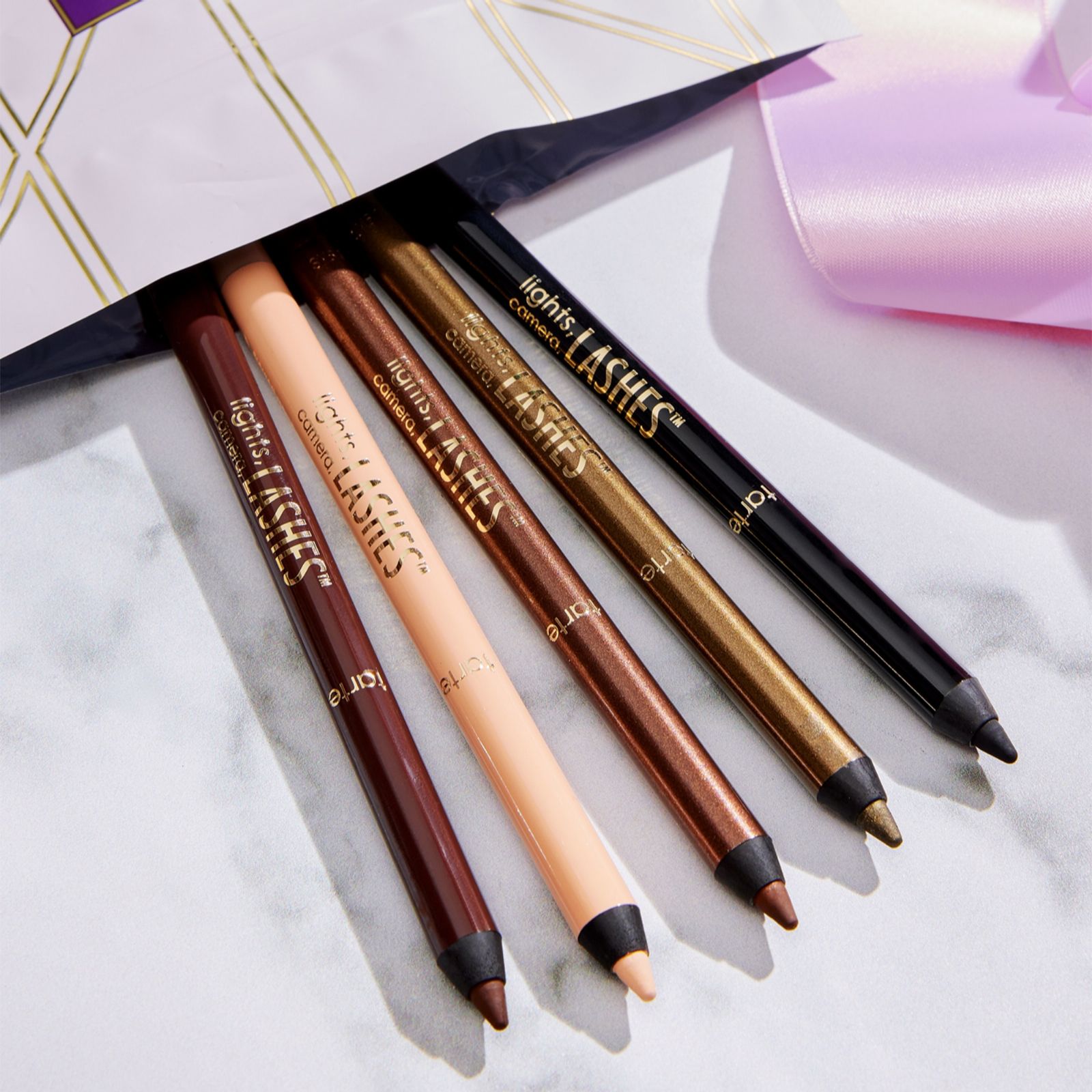 Meet the tarte Precious Presents Lights, Camera, Lashes five-piece gel eyeliners set, your new go-to for creating stunning eye looks. This collection features five precision gel eyeliners that glide on smoothly, helping you achieve anything from a subtle line to a dramatic wing. In an array of colours, you'll have everything you need to create beautiful eye looks, with even a nude colour included for your waterline. Perfect for daily wear or special occasions, these eyeliners offer versatility and long-lasting colour for any event.