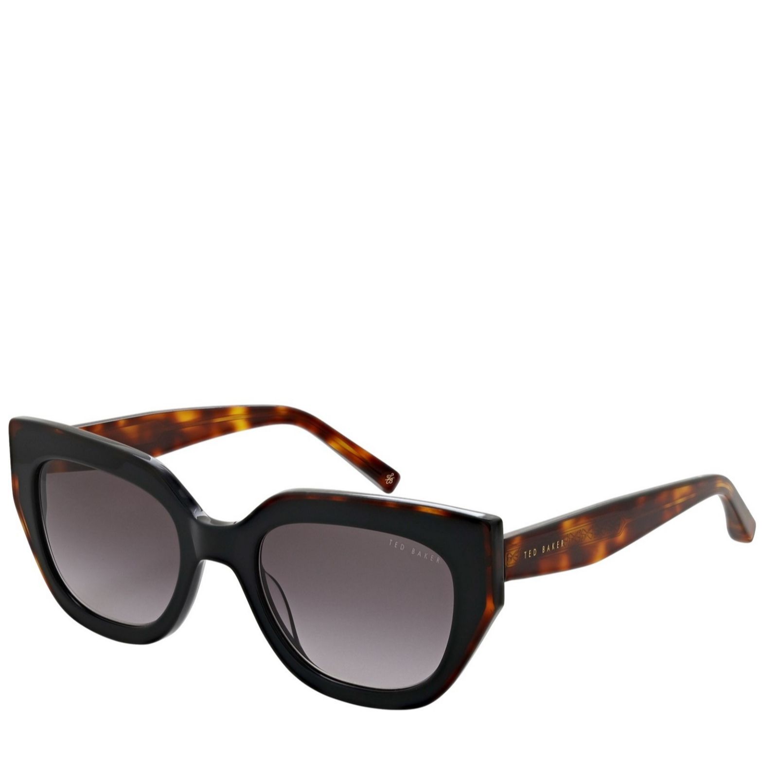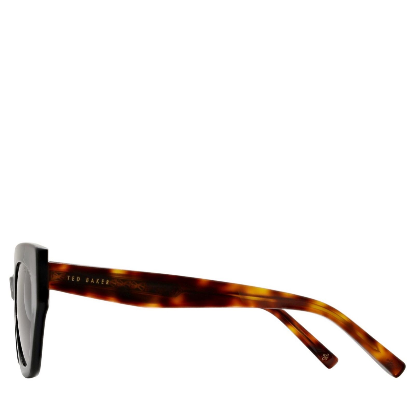 Embrace sunny style with the Ted Baker Coral sunglasses, a modern take on the classic cat eye design. These chic sunglasses feature a striking combination of black laminated on tortoiseshell, complete with bespoke engraved core wire and complementary tortoiseshell temples, ensuring you make a bold statement. Ideal for any sunny day, these sunglasses effortlessly blend sophistication and contemporary fashion. Pair with a sleek summer dress or your favourite casual outfit for an elegant look.