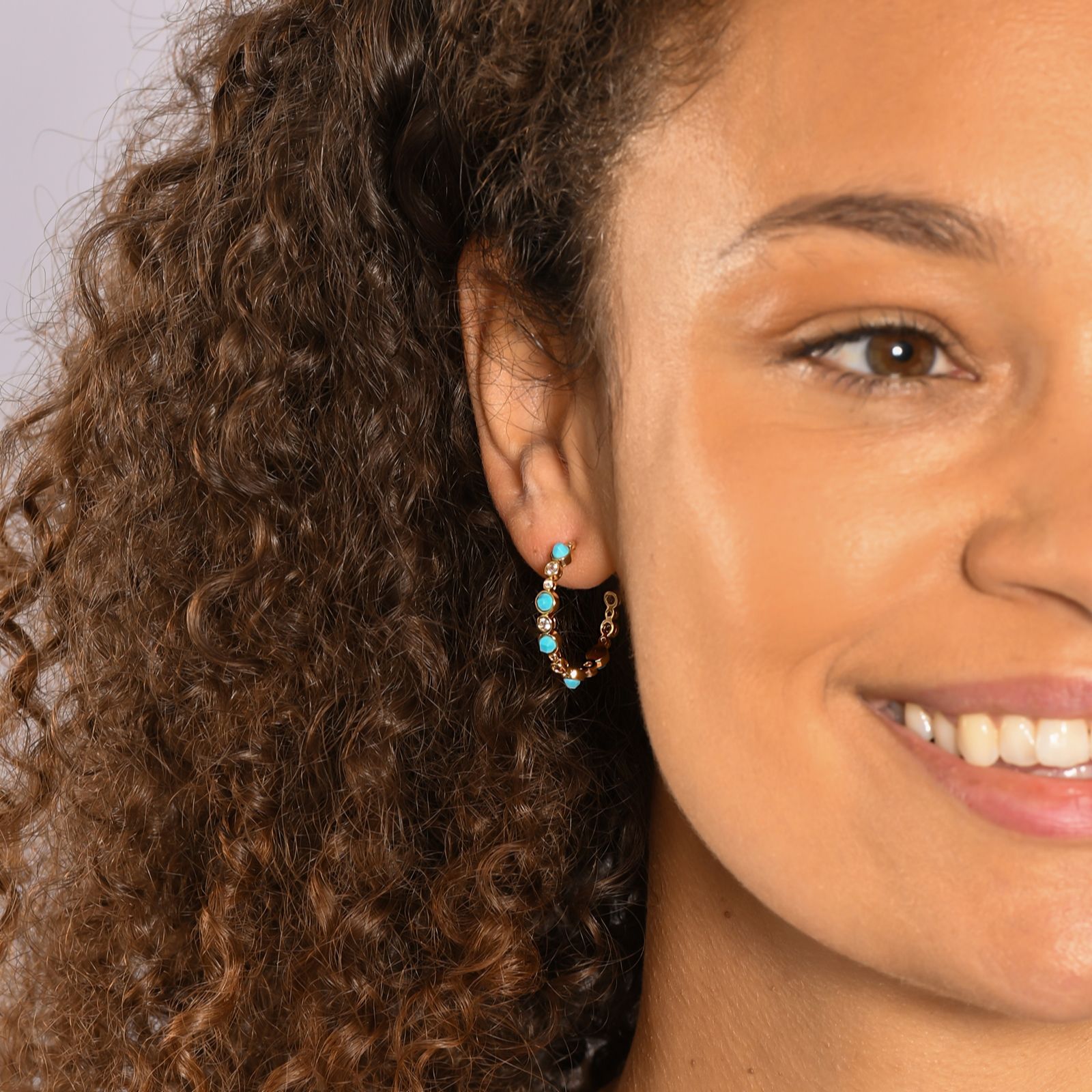 Radiate effortless style with these My Jewellery List Tess Daly Bubble Hoop Earrings, where semi-precious stones and sparkling cubic zirconia are beautifully set in a playful hoop design. The recycled brass construction and titanium post ensure both durability and comfort, making them a chic choice for everyday elegance or adding a touch of glamour to special occasions.