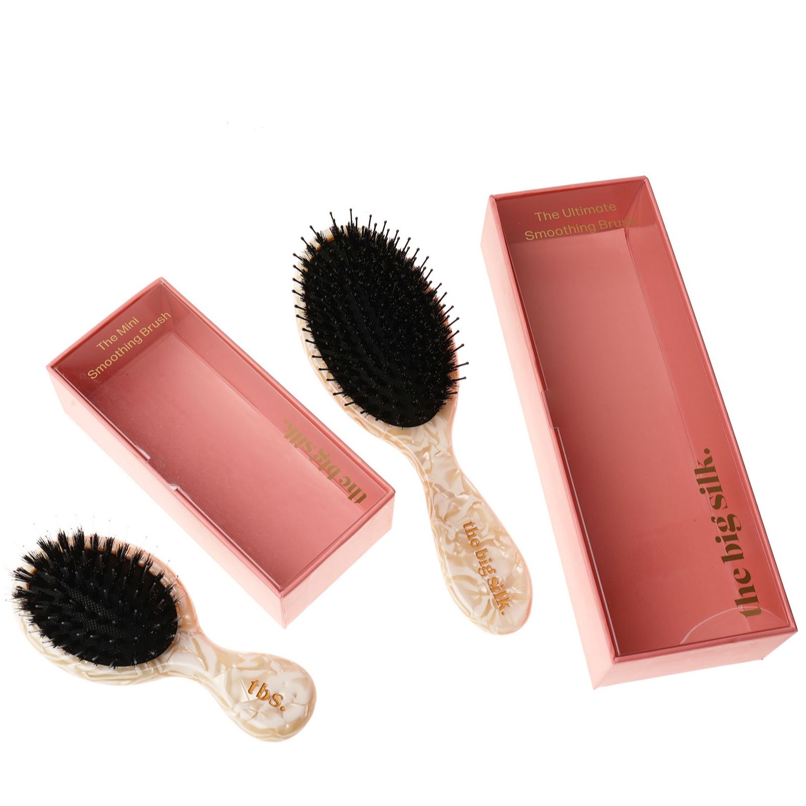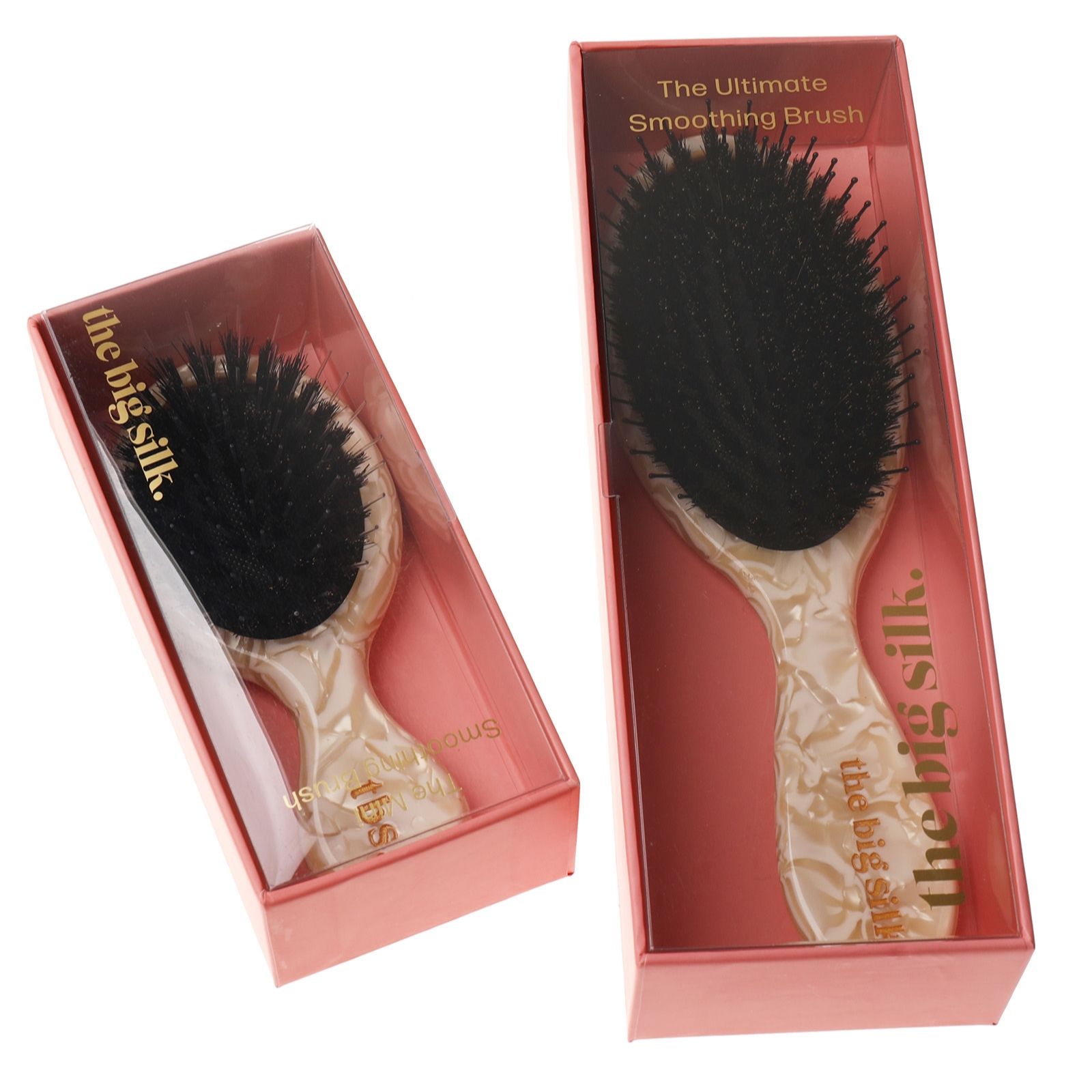 Experience effortless styling with The Big Silk Bristle Brush Duo, featuring both a regular-sized smoothing brush and a handy pocket-sized brush. Whether you're at home or on the go, this versatile duo helps to keep your hair looking sleek and well-groomed, making it an ideal addition to your daily beauty routine or for quick touch-ups throughout the day.