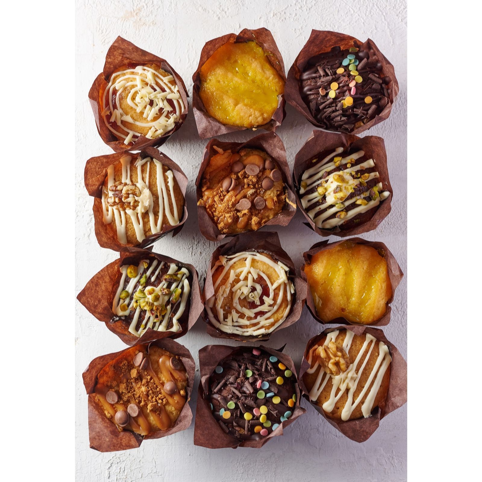 Indulge in the delightful flavours of The Original Cake Company's 12-piece Summer Muffins selection. This scrumptious set includes two each of Coffee Muffin, Lemon Drizzle Muffin, Triple Chocolate Muffin, Biscoff Muffin, Strawberry & White Chocolate Muffin, and Carrot Cake Muffin. Perfect for a summer picnic or a cosy afternoon tea, these muffins are made with quality ingredients and are suitable for vegetarians. Each muffin offers a unique taste experience, from the rich coffee frosting to the zesty lemon drizzle.
