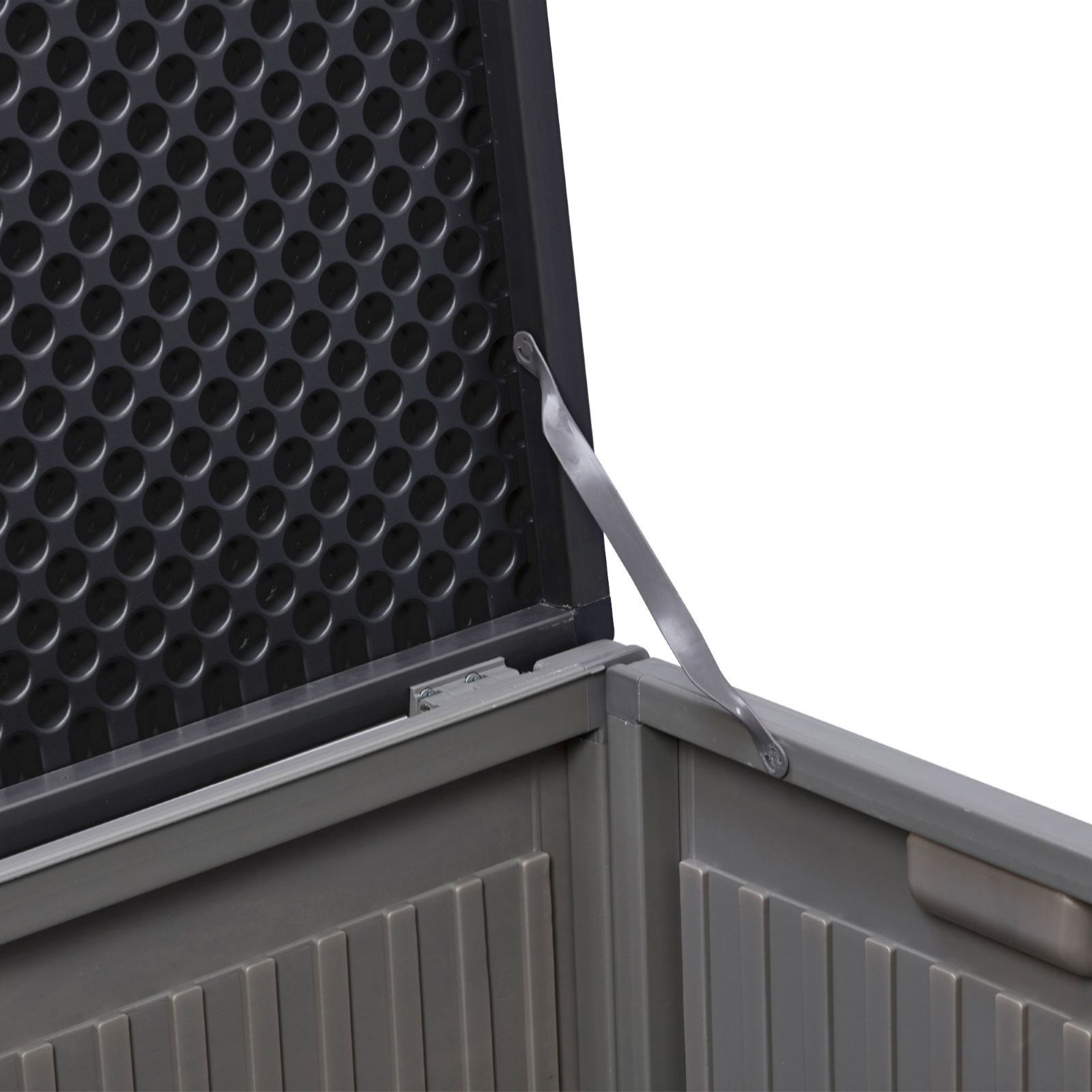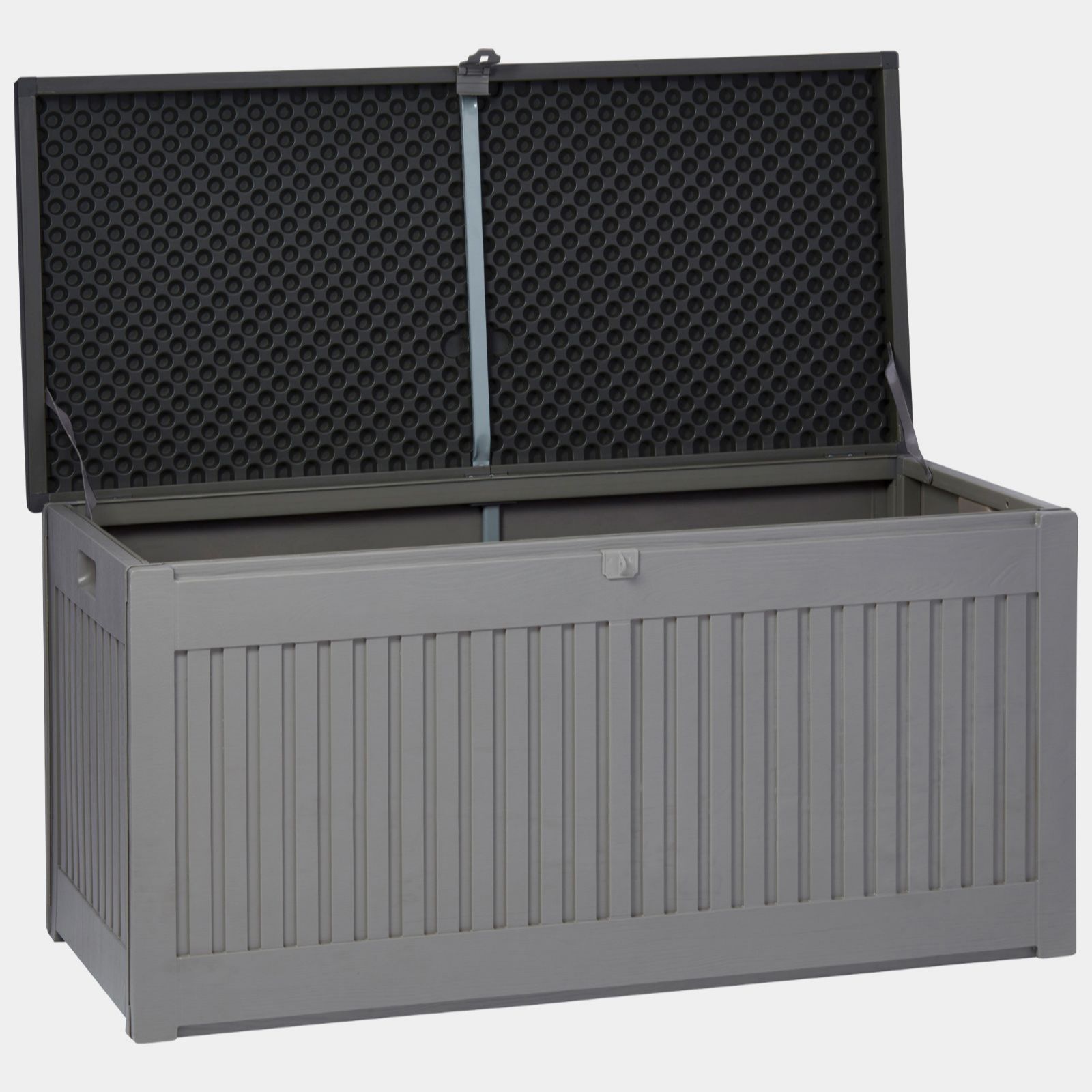 - Reinforced hinged lid, lockable design (padlock not included), doubles as seating, 270L capacity, easy assembly, 12-month guarantee