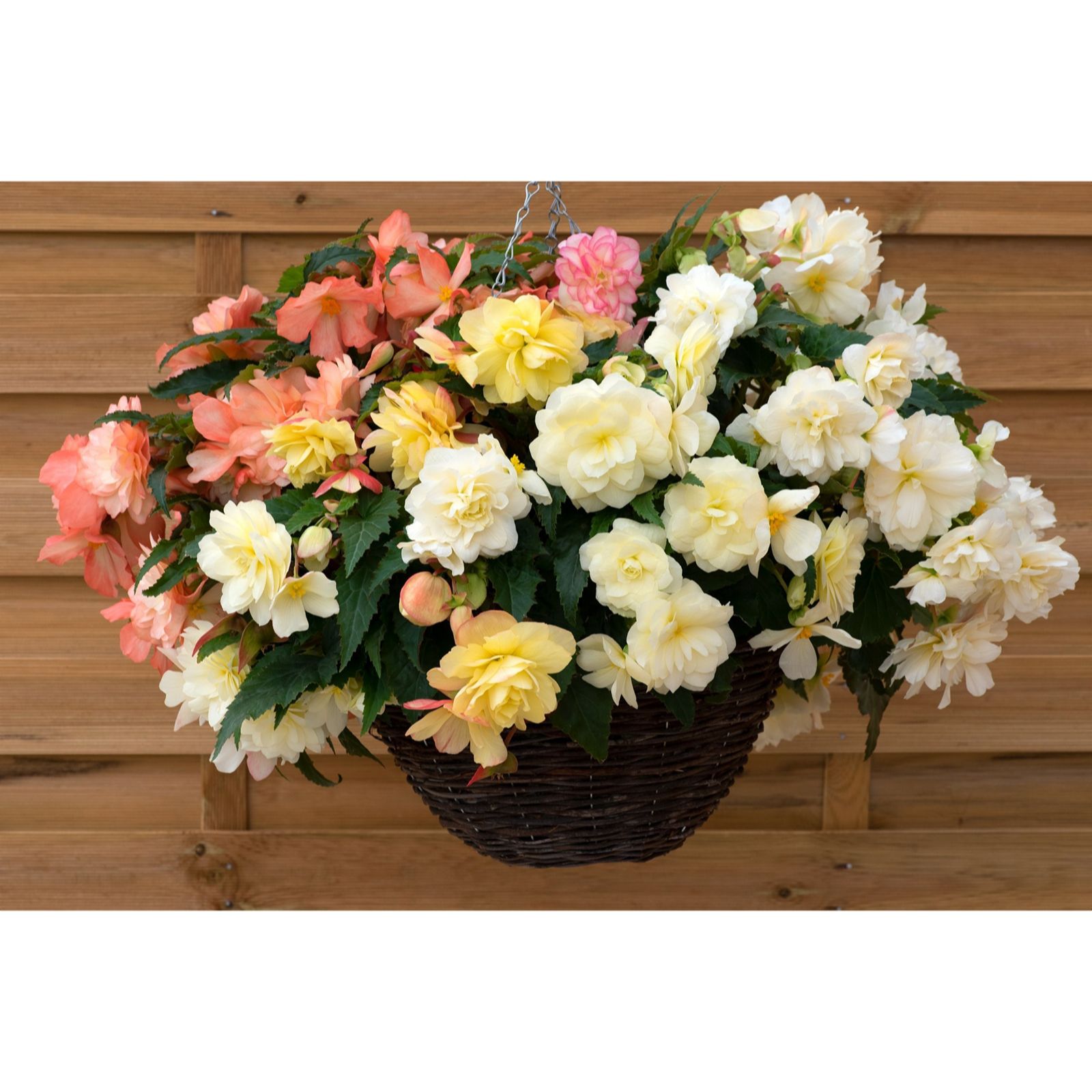 Straight from the esteemed Thompson & Morgan, we present the Begonia Nonstop Joy Peaches & Dreams, a perennial plant that will be a delightful addition to your garden. With its impressive, extra-large double flowers in warm vanilla, lemon, and pink, it's perfect for adding a burst of colour to your mixed containers, borders, or hanging baskets. This vigorous plant matches the Nonstop Joy series beautifully, making it an essential for your premium shade basket programs.