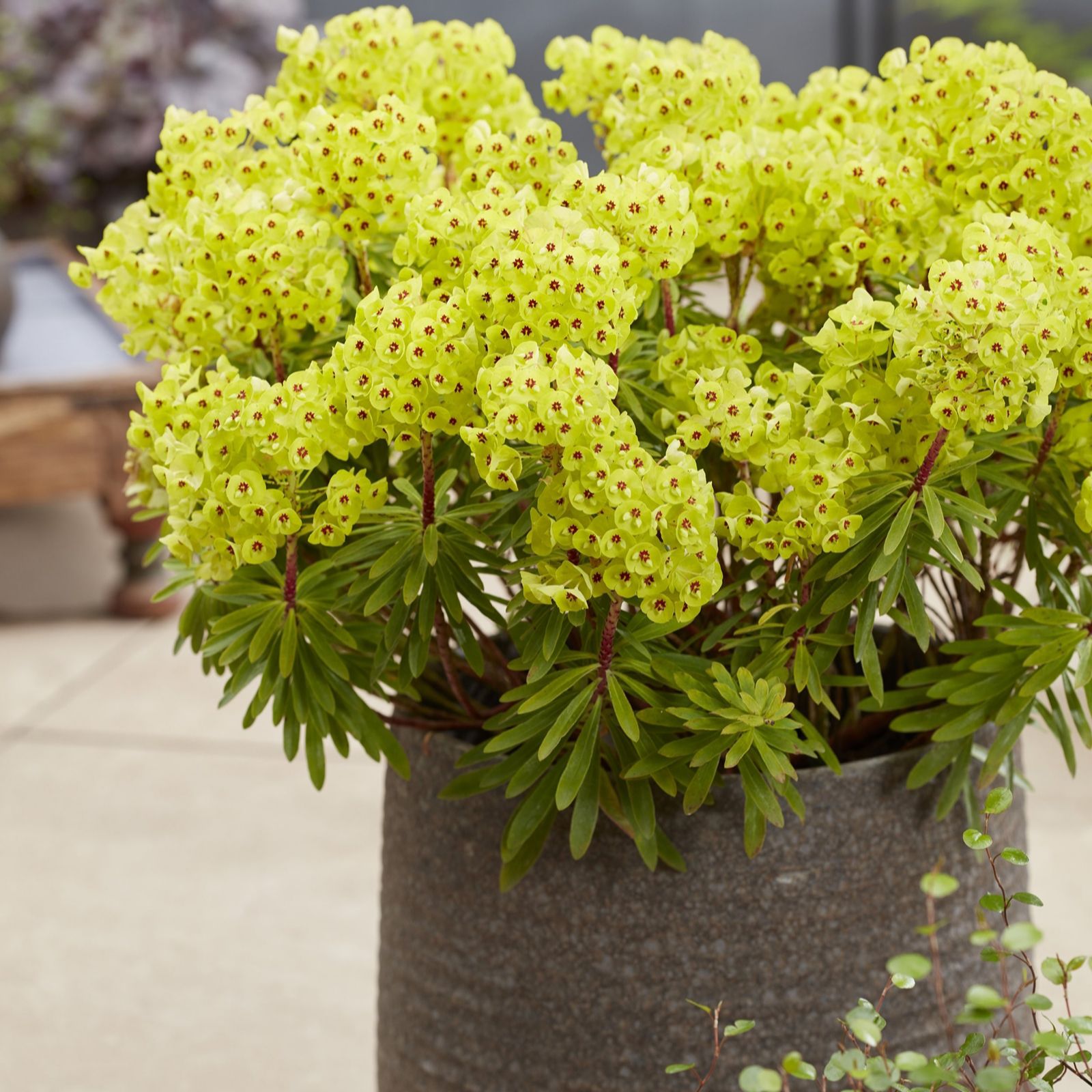 Brighten up your outdoor space with Euphorbia Martinii Little Treasure from Thompson & Morgan, a newly launched variety celebrated for its vivid yellow foliage and zesty blooms. Perfect for borders or containers, this shrub's compact, bushy habit and copper-toned tips in cooler weather offer year-round visual appeal, making it a cheerful addition to any garden setting.