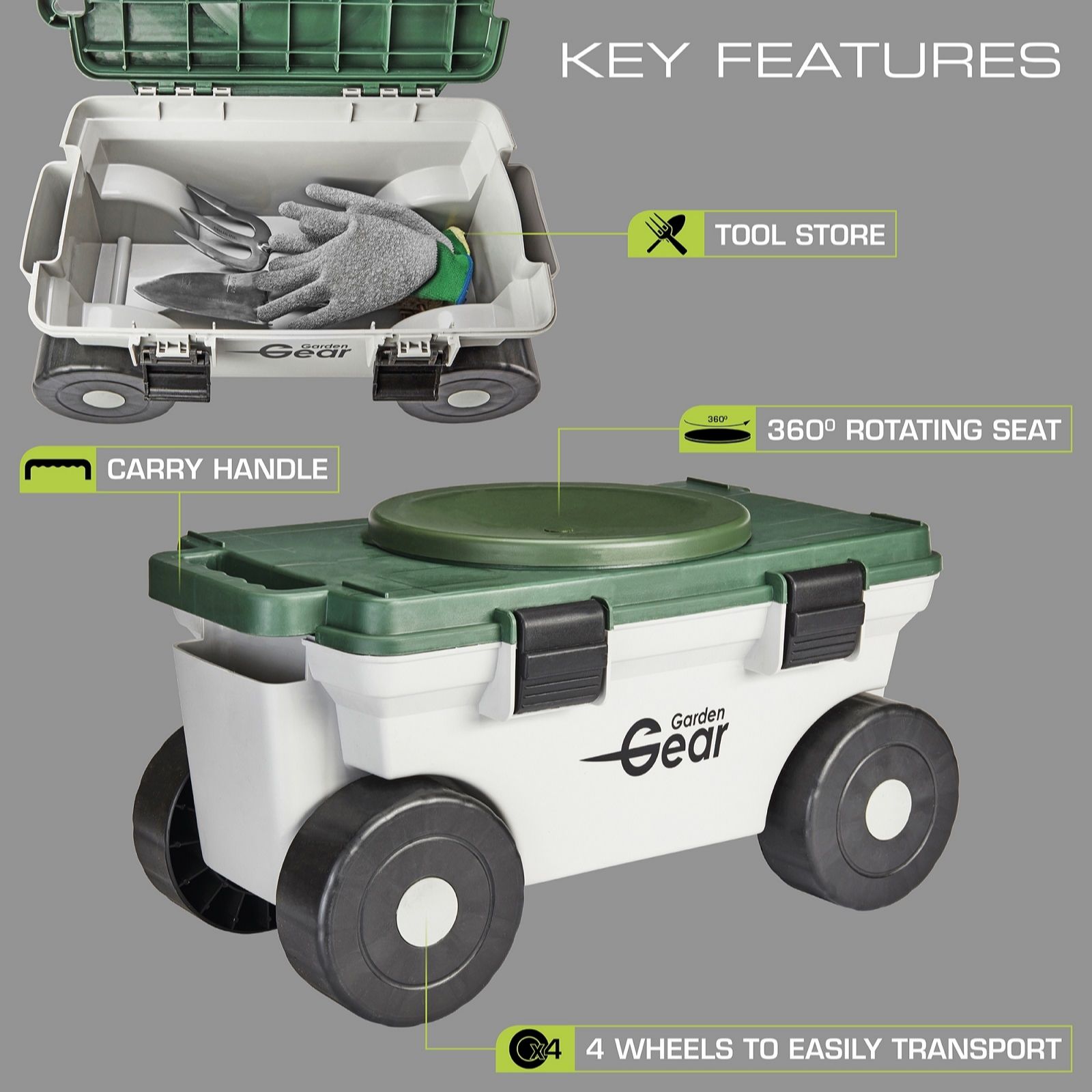 Enjoy effortless gardening with the Garden Mobile Rotating Seat & Tool Store from Thompson & Morgan, featuring a 360-degree swivel seat and built-in storage to keep your tools close while you work. Ideal for weeding, tending borders or edging lawns, this versatile seat helps reduce strain and discomfort, and can even double as a handy seat indoors for DIY projects or cleaning.