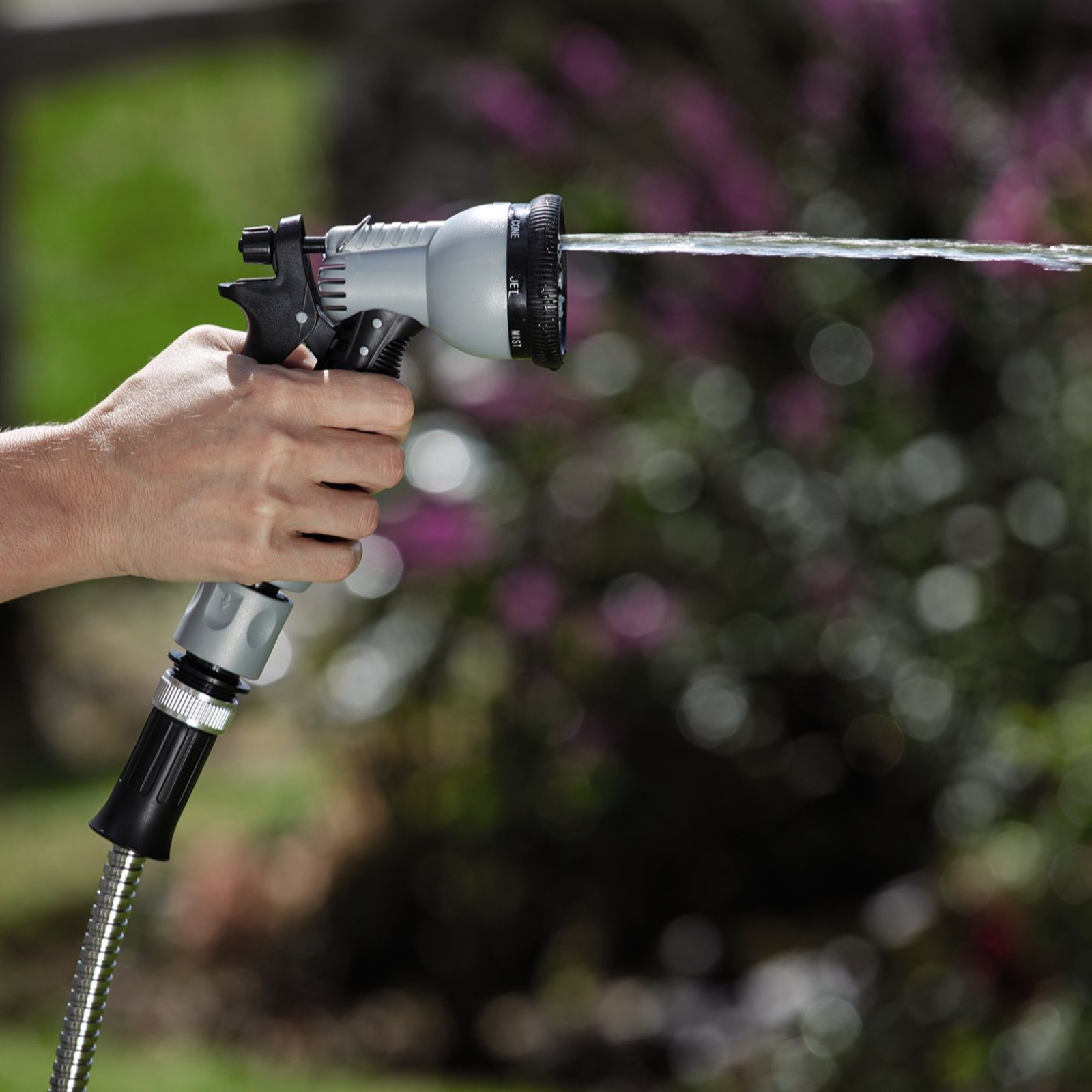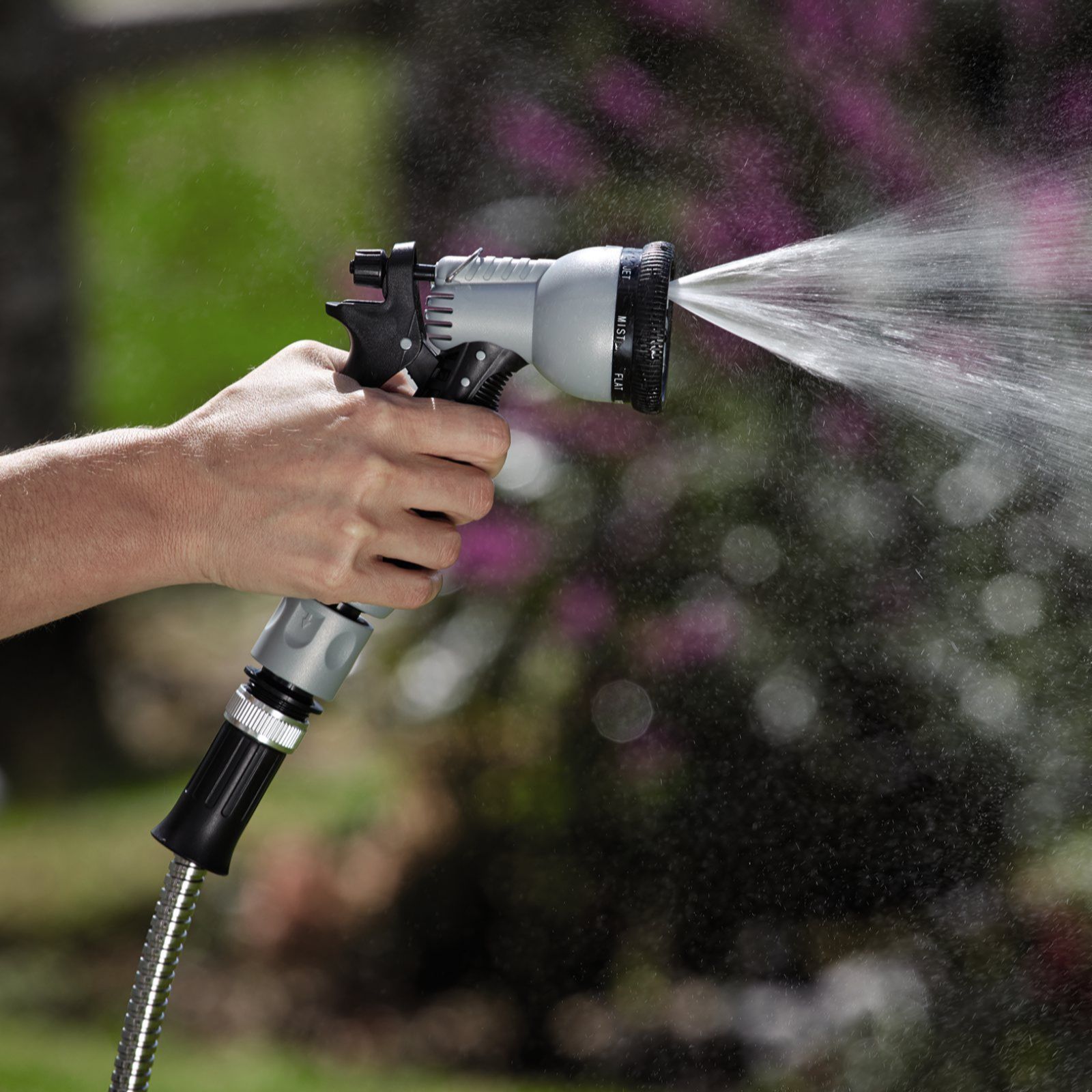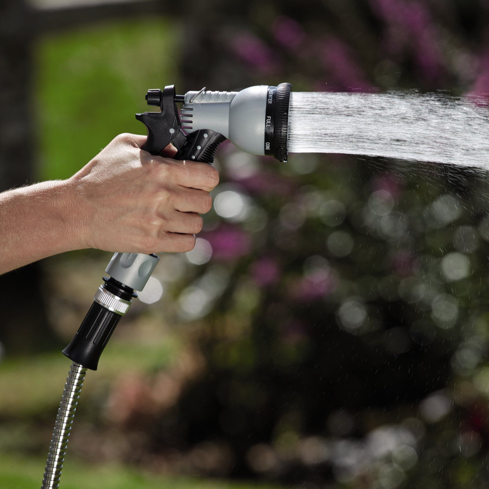 - Includes: eight-pattern handheld spray nozzle with trigger lock