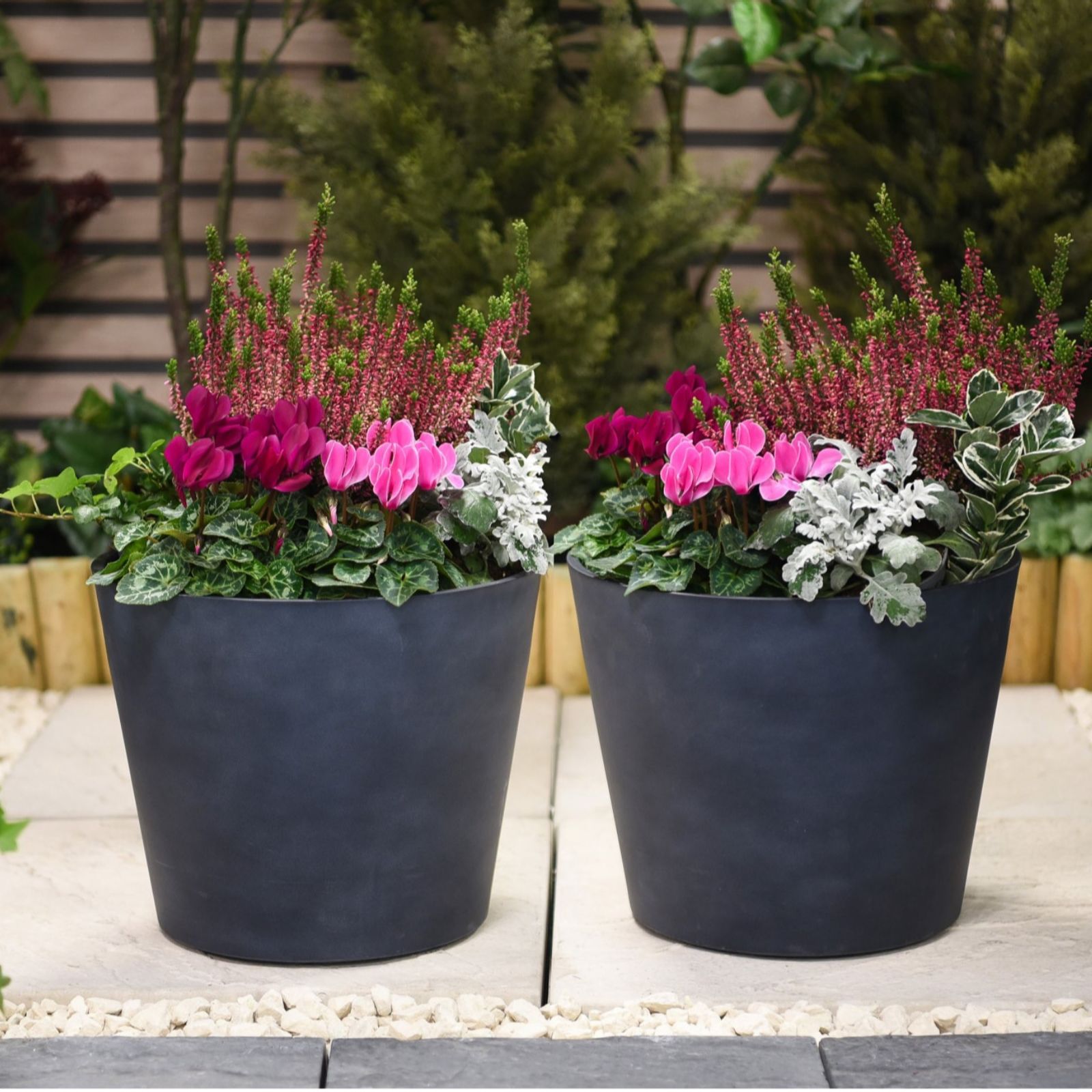 Give your outdoor space a stylish update with this stone-effect planter from Thompson & Morgan, designed to capture the timeless look of natural stone while offering a lightweight, easy-to-move alternative. This pot's elegant silhouette and dark grey finish provide the perfect backdrop for vibrant flowers or lush greenery, making it an ideal choice for patios, balconies or garden borders.