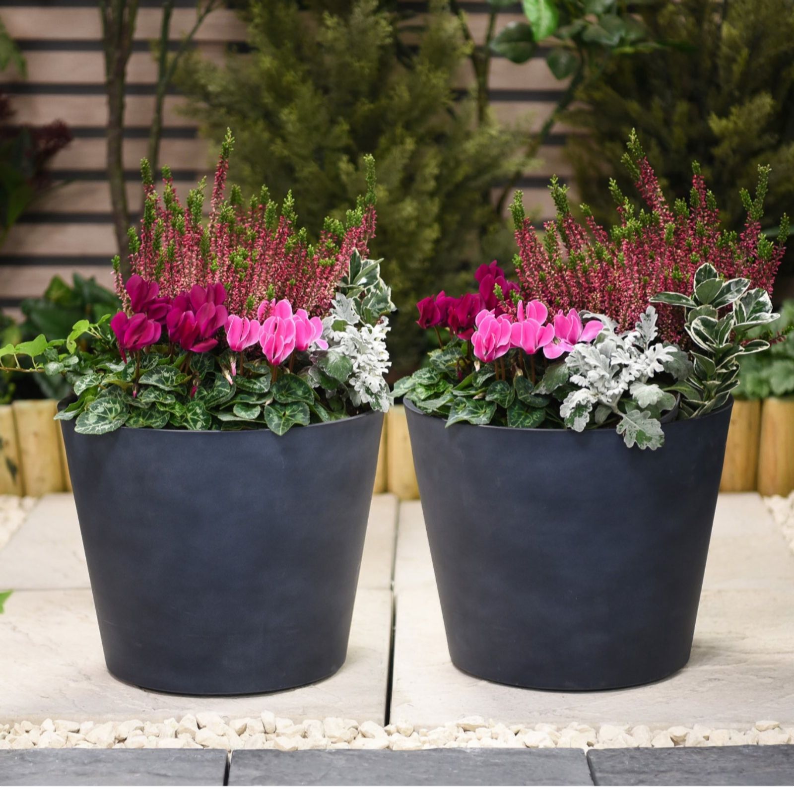Give your outdoor space a stylish update with this stone-effect planter from Thompson & Morgan, designed to capture the timeless look of natural stone while offering a lightweight, easy-to-move alternative. This pot's elegant silhouette and dark grey finish provide the perfect backdrop for vibrant flowers or lush greenery, making it an ideal choice for patios, balconies or garden borders.