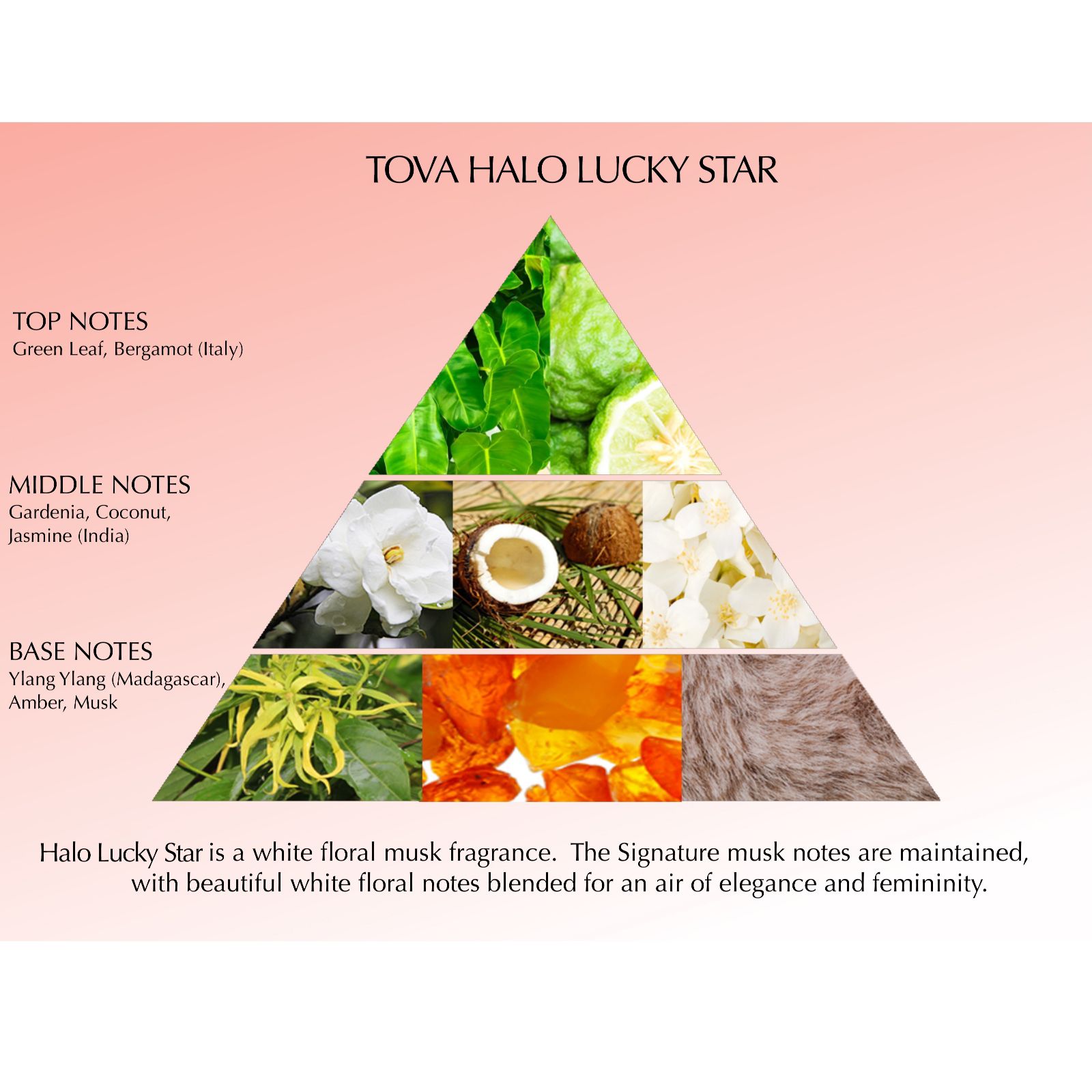 Experience the elegance of Tova Halo Lucky Star Edition Eau de Parfum, a fragrance that embodies sophistication. Inspired by Tova's signature scent, this exquisite perfume combines the fresh notes of Italian bergamot and green leaves with the floral heart of Indian jasmine and gardenia, complemented by the tropical hint of coconut. The base notes of ylang from Madagascar, amber and musk add a sensual touch, making it ideal for any occasion, whether day or night.