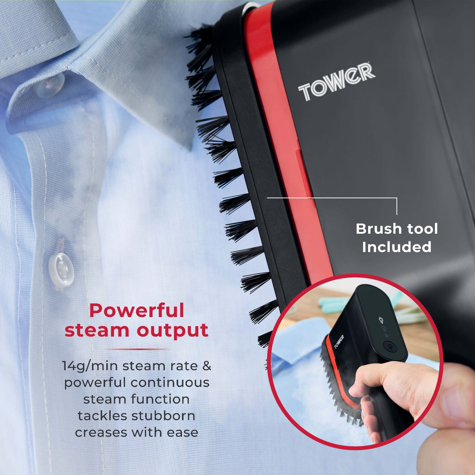 - 1 x Tower 1400W Digital Garment Steamer