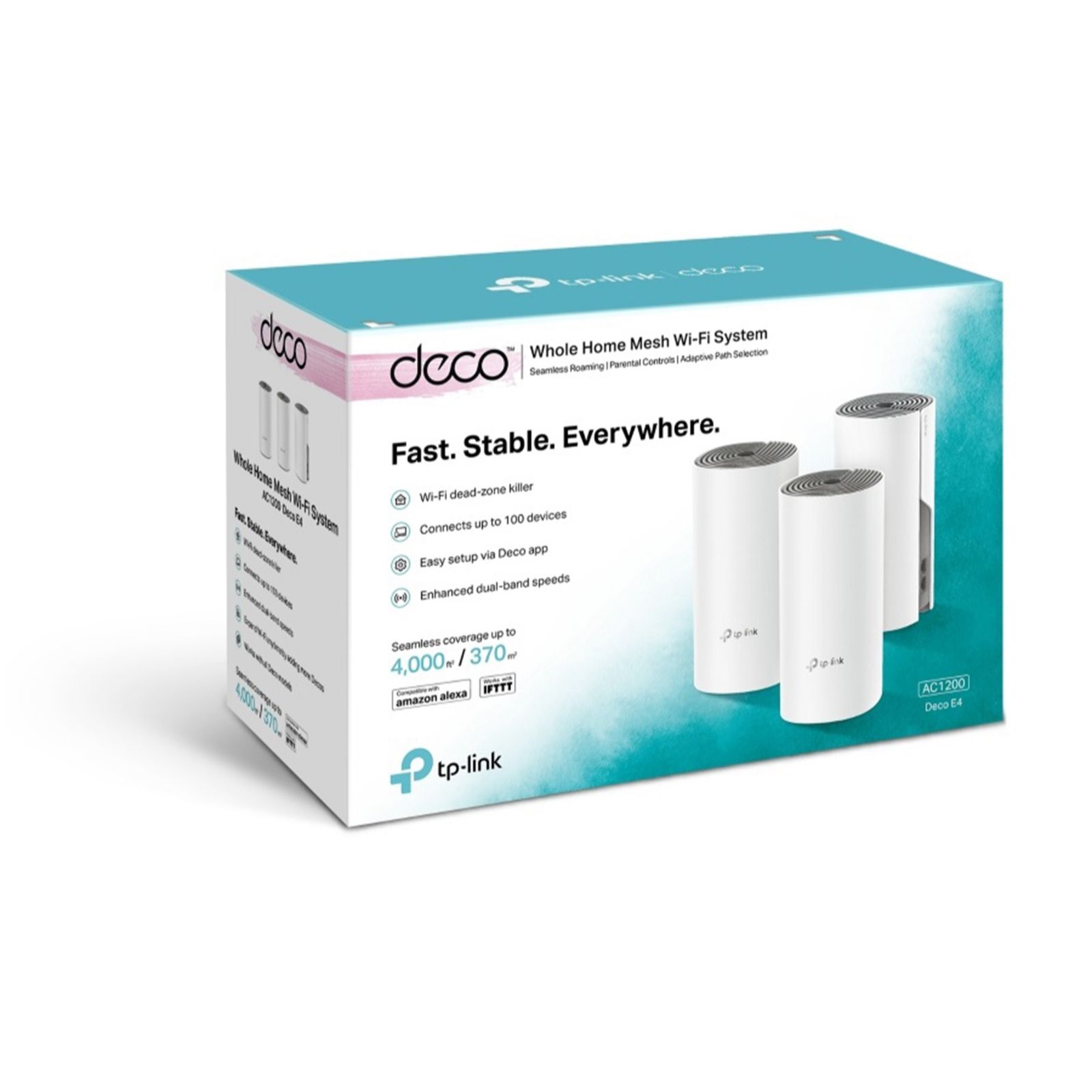 Transform your homes internet experience with the TP-Link Deco E4 AC1200 Whole Home Mesh Wi-Fi System 3-pack. This advanced system uses Deco Mesh Technology to create a unified network with seamless coverage across up to 4,000 square feet, eliminating weak signal areas. Ideal for busy households, it supports up to 100 devices with speeds up to 1167 Mbps. The Deco app simplifies setup, while robust parental controls ensure a safe browsing environment for all family members.