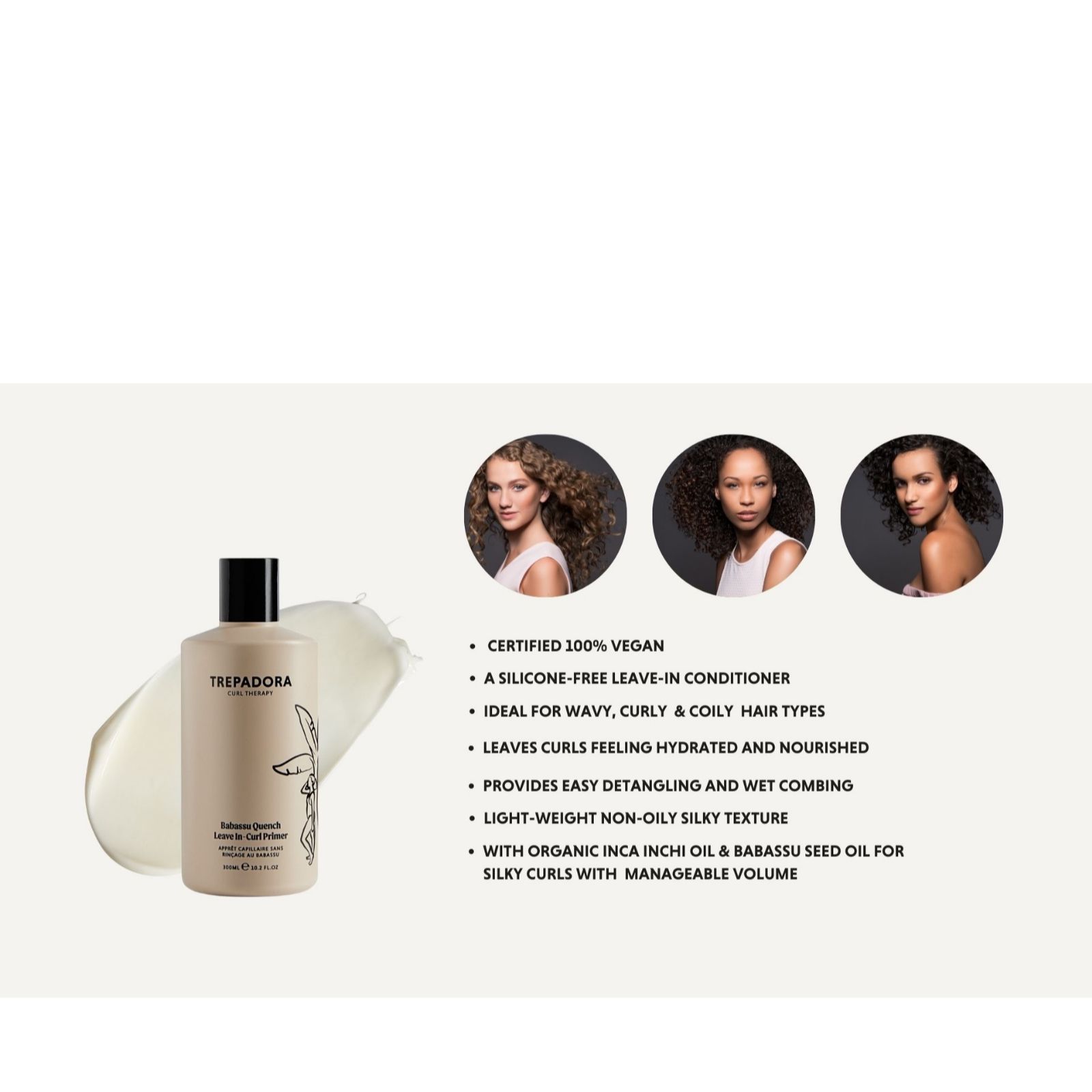 - 1 x Babassu Quench Leave-In Curl Primer (300ml) - a moisturising leave-in hair primer designed to help curly hair look and feel softer and act as a base for your styling products. Contains coconut and cranberry oil. Colour-safe and free from silicones, sulfates, phthalates, mineral oil, artificial colours, parabens and animal products