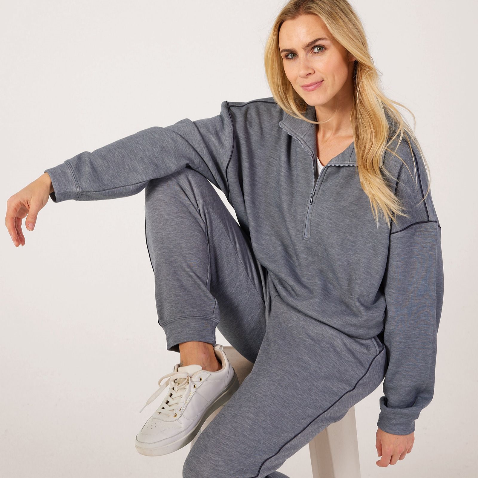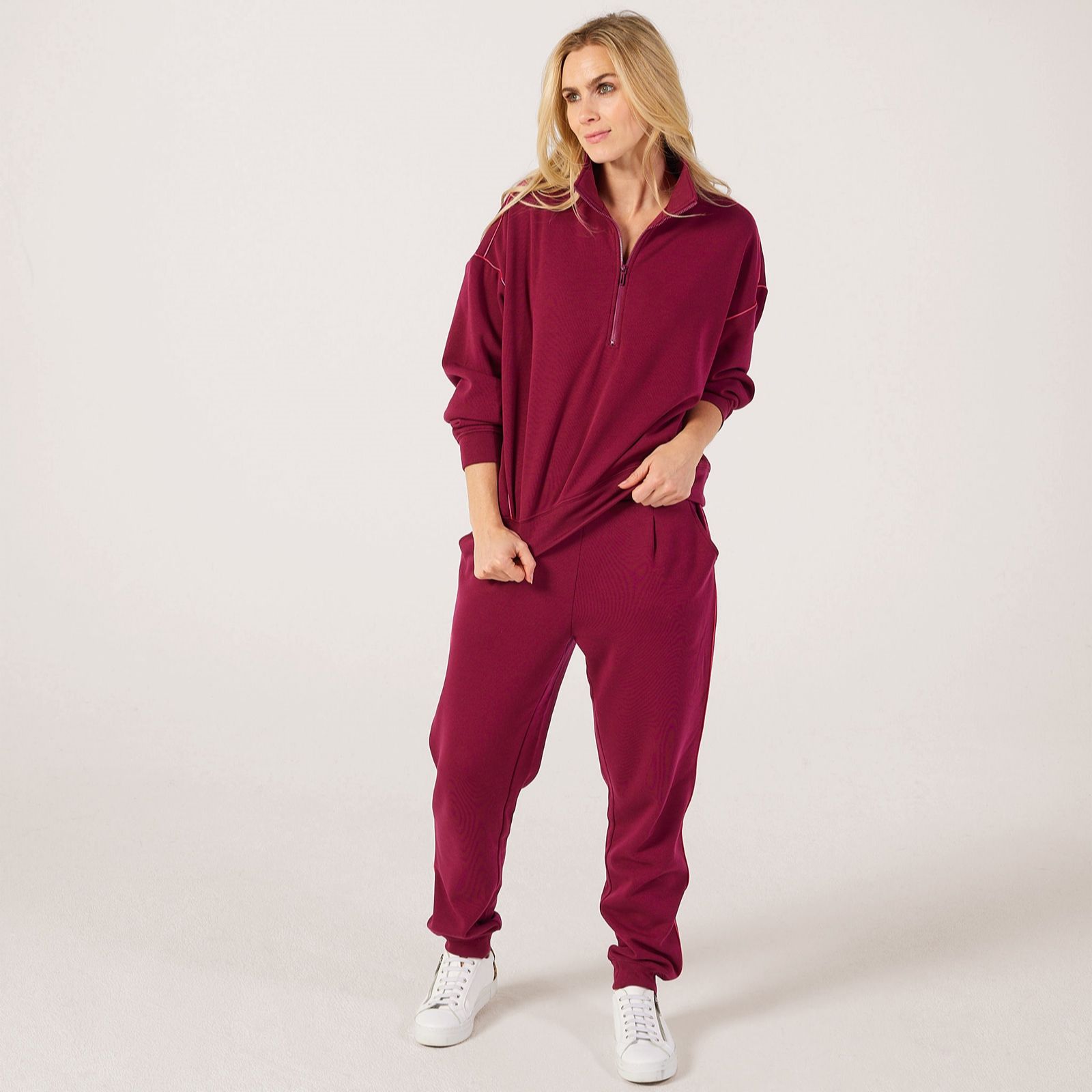 Go about your day in comfort and style with the Triumph MyWear half zip top, a modern oversized design that blends cosy warmth with contemporary details. The stand-up collar, sleek cuffs and contrast piping give it a polished edge, while the soft inner fabric makes it perfect for relaxed weekends, casual outings or layering on cooler days. Try pairing it with tailored trousers and trainers for an effortlessly chic, off-duty look.